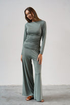 Lekkie, zmysłowe i stworzone do ruchu – te spodnie to uosobienie wygody w kobiecym wydaniu. Swobodny krój z rozszerzającą się nogawką subtelnie podkreśla linię ciała nie tylko wysmuklając nogi, ale też zapewniając wygodę i lekkość przy każdym kroku.