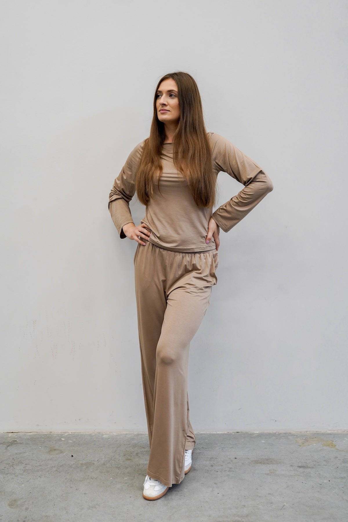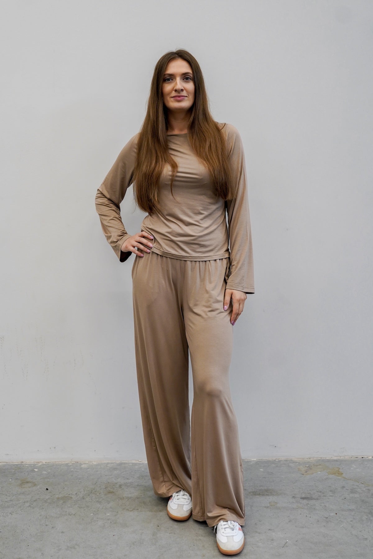 Wykonane z wysokogatunkowej dzianiny – 94% modalu i 6% elastanu – są nie tylko przyjemnie miękkie, ale też oddychające i trwałe. Materiał pięknie się układa, otulając skórę jak druga skóra, a jednocześnie pozwala jej swobodnie oddychać.