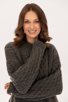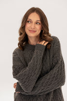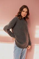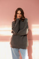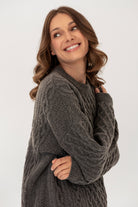 Mięsisty, piękny splot typu warkocz robi całą robotę – dodaje oryginalnej struktury, trzyma formę i pięknie układa się na sylwetce, a swobodny, zdecydowanie dłuższy fason idealnie go dopełnia.