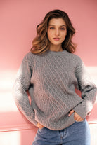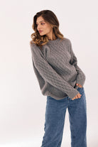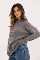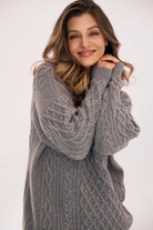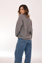 Mięsisty, piękny splot typu warkocz robi całą robotę – dodaje oryginalnej struktury, trzyma formę i pięknie układa się na sylwetce, a swobodny, zdecydowanie dłuższy fason idealnie go dopełnia.