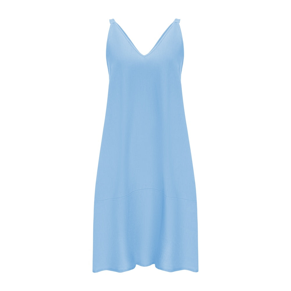 It has slightly wider straps that beautifully reveal the shoulders and a slightly deeper V-neckline, exposing the neck and collarbones. Plus straight lines and knee length, it's a summer dress after all! The material is 100% linen, which is not only light and pleasant to the body, but also ensures ease of wearing. Everything is enclosed in an airy, feminine and extremely comfortable design that will work well regardless of the situation.