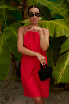 A graceful Mare dress with a simple, loose cut that will be perfect for summer days. The halter neckline beautifully emphasizes the shoulder line, and the delicate, thin straps tied at the neck attract attention, exposing the back. In addition, a comfortable knee-length that allows you to feel comfortable in it all day long. Finally, the material - linen fabric in beautiful, summer colors adds lightness and subtlety in movement. Wear it with sandals or flip-flops, and if the occasion requires it, complement it with high heels. Feminine minimalism at its best.