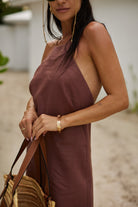 A graceful Mare dress with a simple, loose cut that will be perfect for summer days. The halter neckline beautifully emphasizes the shoulder line, and the delicate, thin straps tied at the neck attract attention, exposing the back. In addition, a comfortable knee-length that allows you to feel comfortable in it all day long. Finally, the material - linen fabric in beautiful, summer colors adds lightness and subtlety in movement. Wear it with sandals or flip-flops, and if the occasion requires it, complement it with high heels. Feminine minimalism at its best.