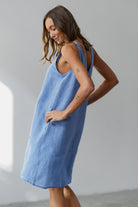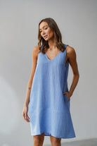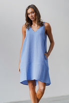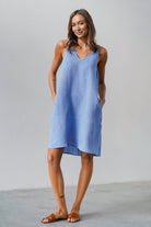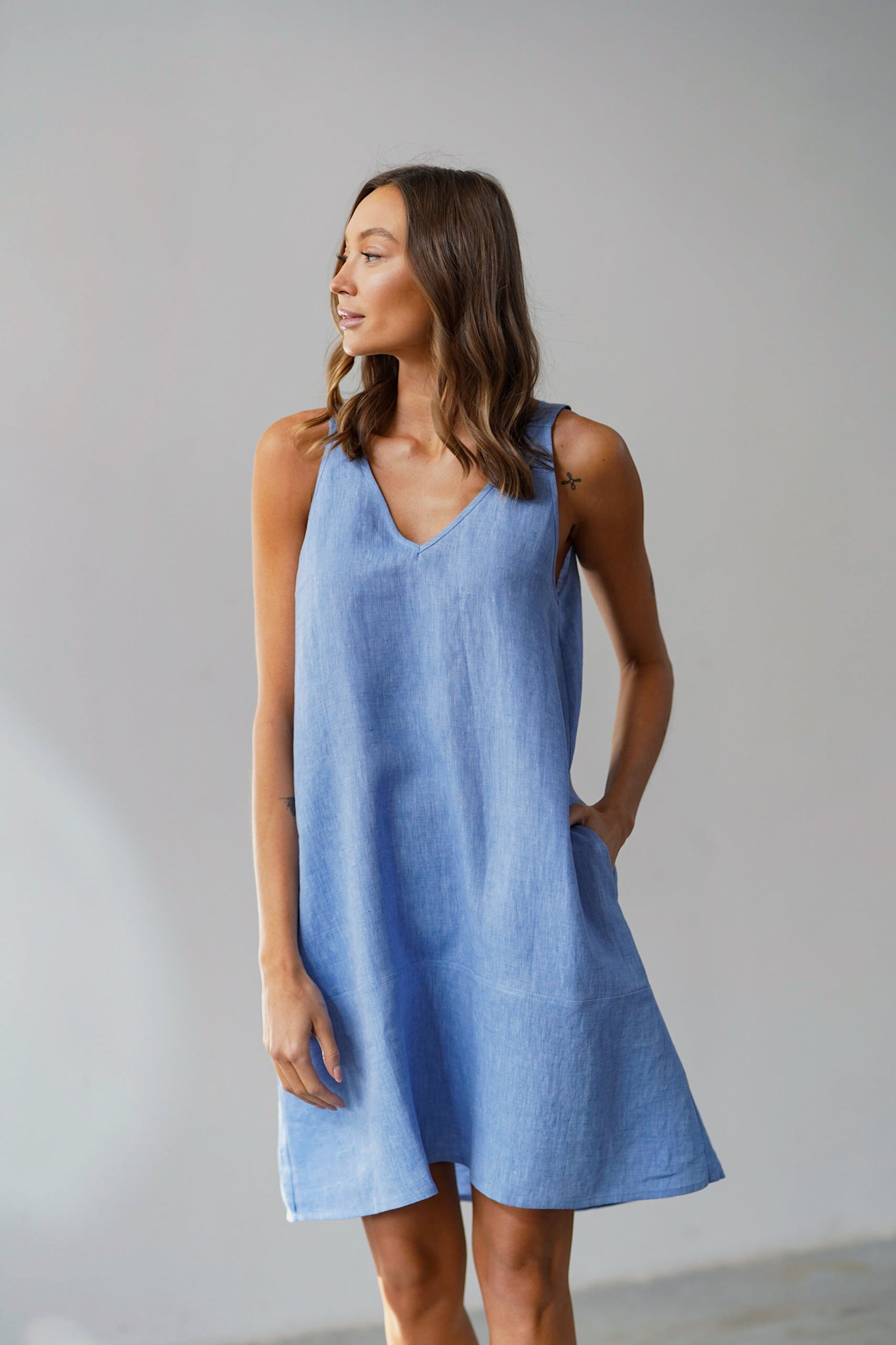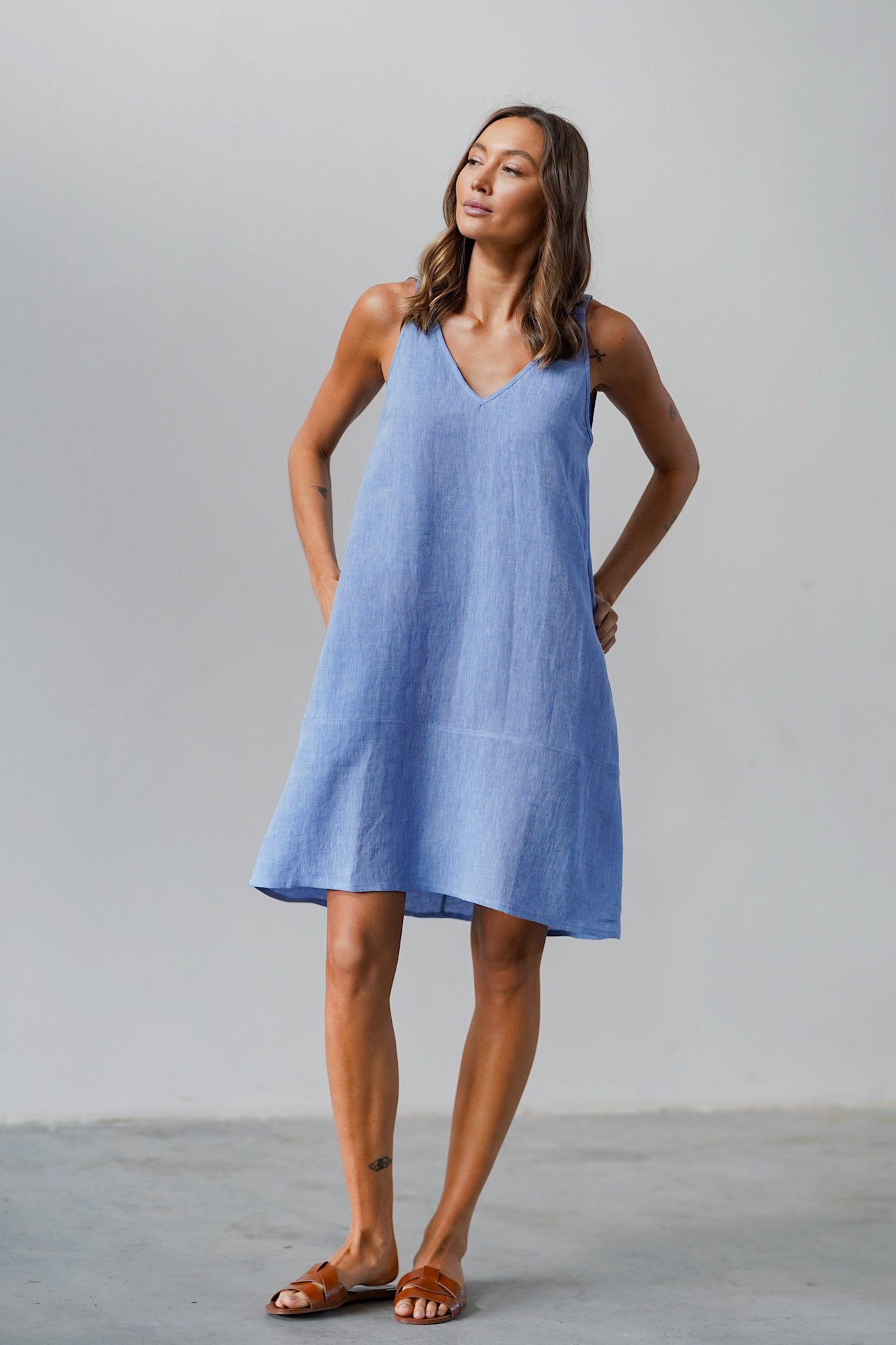It has slightly wider straps that beautifully reveal the shoulders and a slightly deeper V-neckline, exposing the neck and collarbones. Plus straight lines and knee length, it's a summer dress after all! The material is 100% linen, which is not only light and pleasant to the body, but also ensures ease of wearing. Everything is enclosed in an airy, feminine and extremely comfortable design that will work well regardless of the situation.