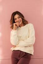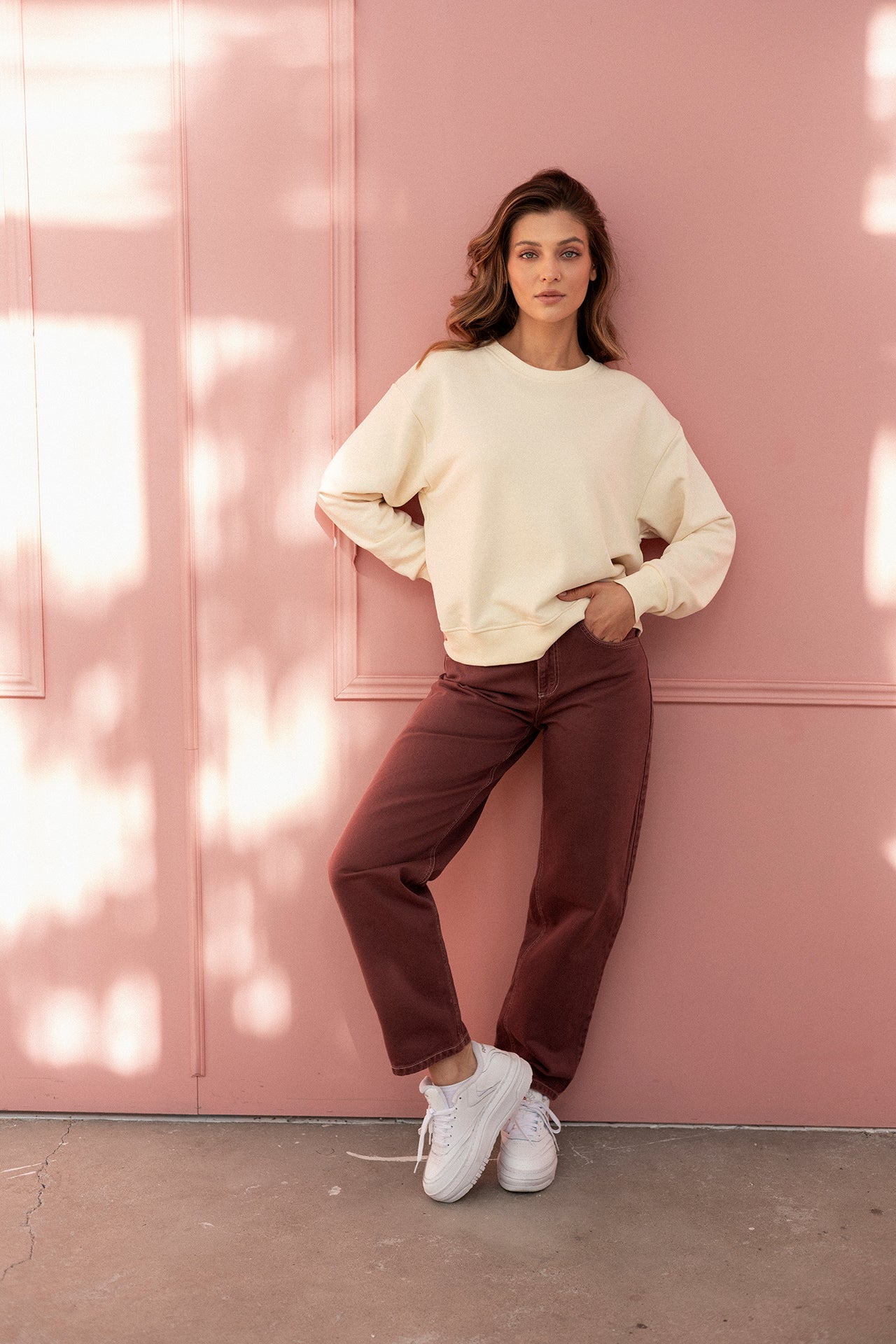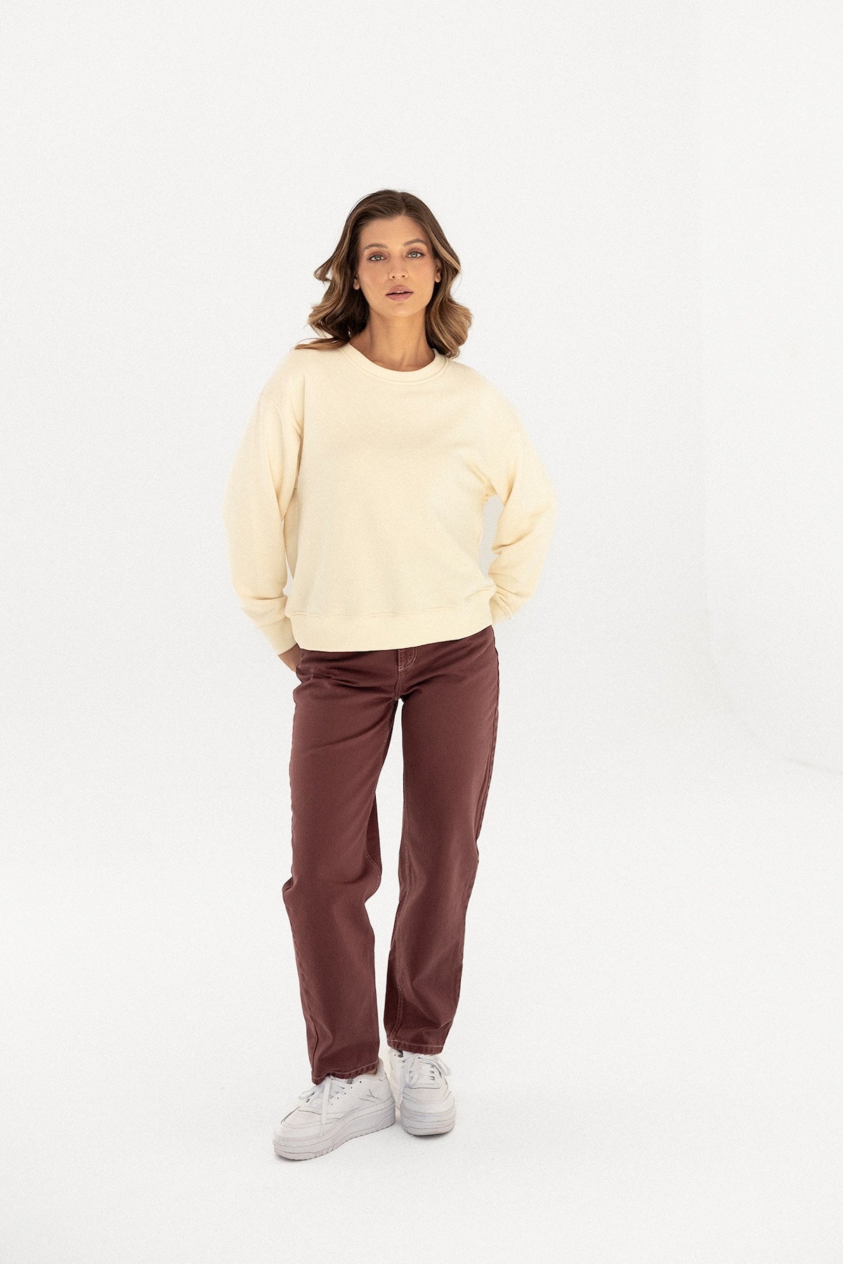 Classical minimalism in feminine and universal form – for spring and summer! This sweatshirt is definitely the Queen when it comes to basic solutions. It has been refined and made from high-quality, airy and non-napped (no characterstic fleece) cotton that will meet the demands of your crazy everyday life.