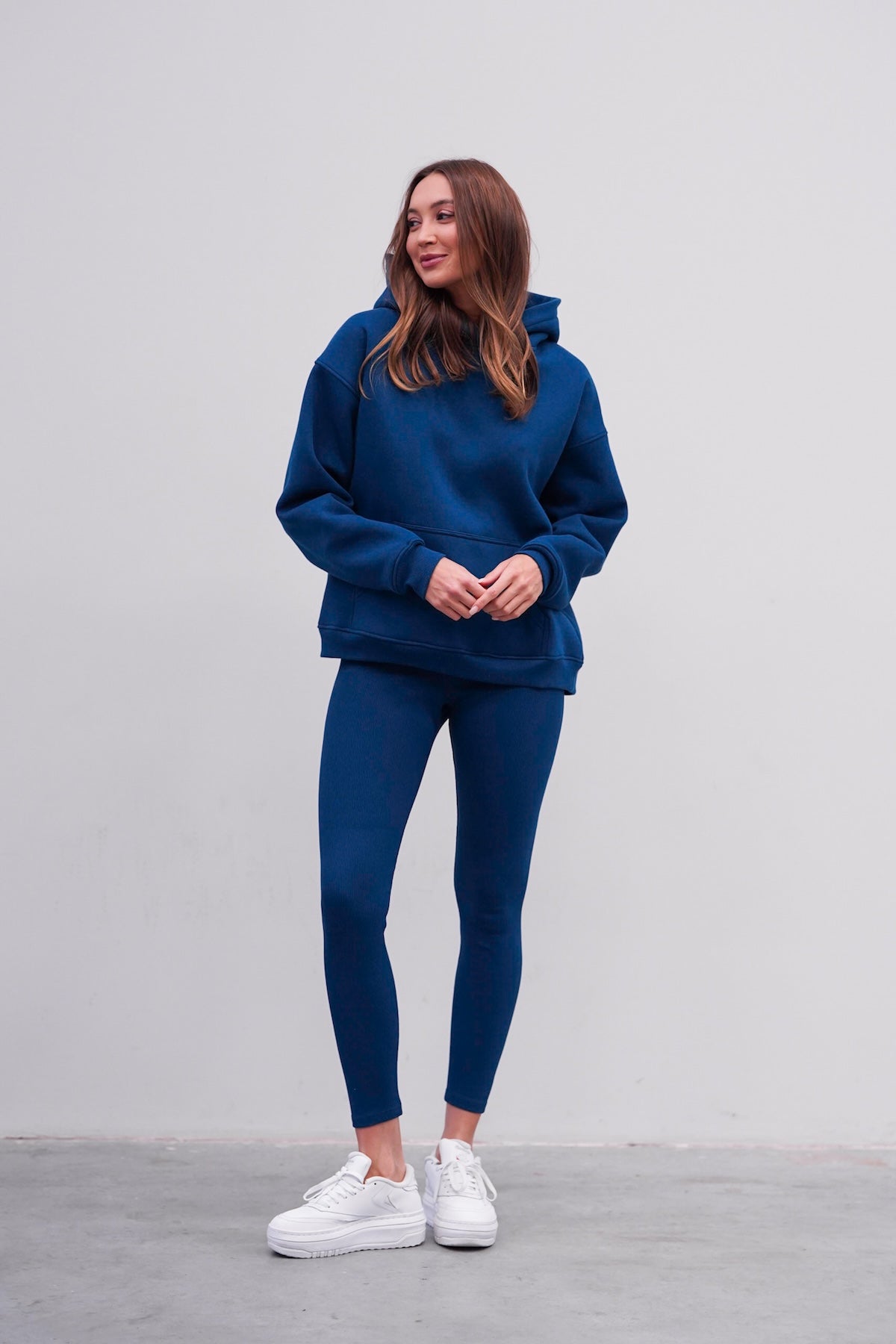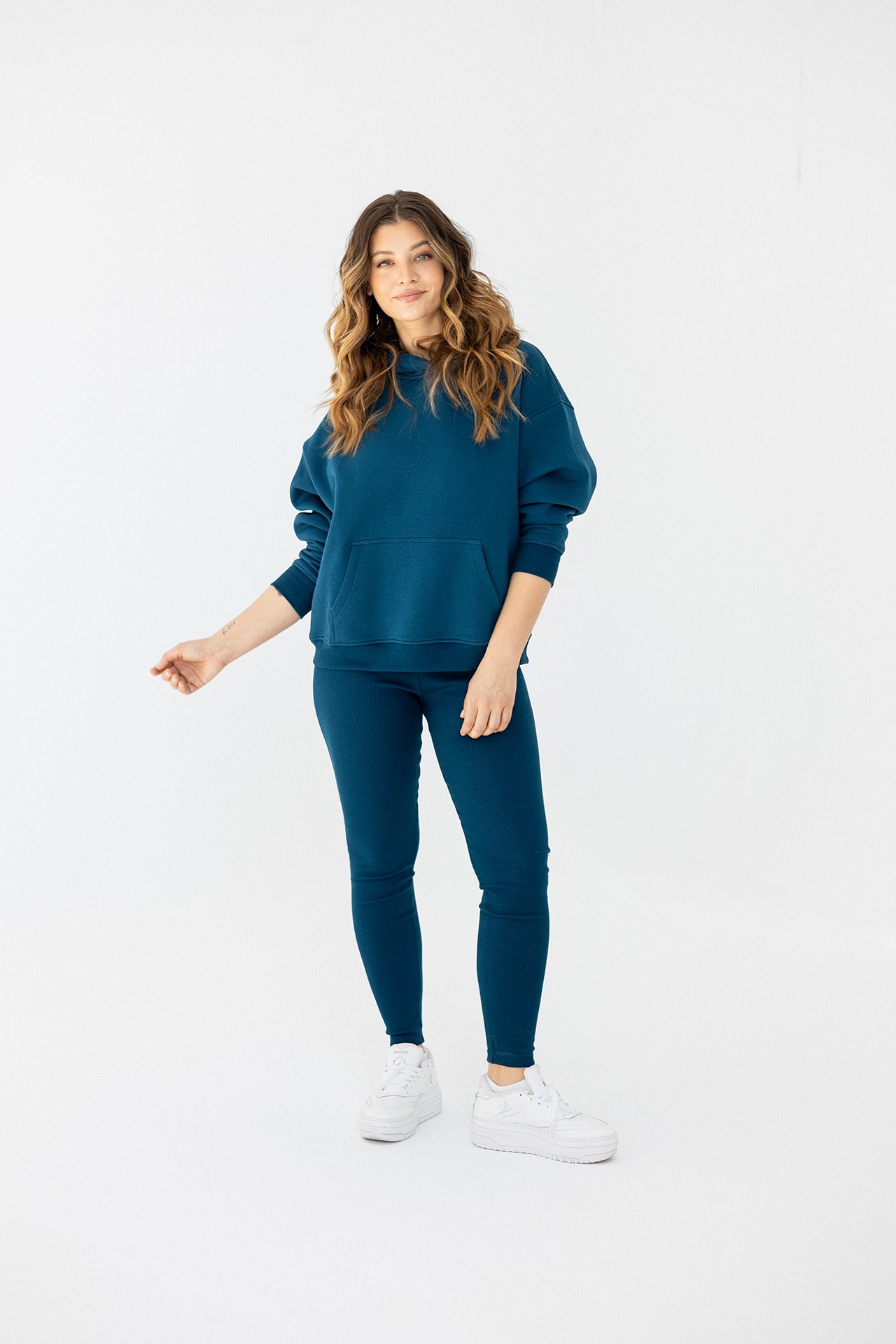 The cut and sleeves are a bit looser, but with some common sense, so that it is comfortable and feminine, and your figure is properly accentuated. Plus attention to trimming and aesthetic ribbing. It reaches just below your hips, so you can easilly wear it with leggings.