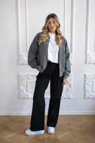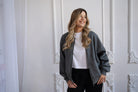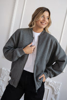 Sporty Chic Bomber Jacket Grey Dark Melange