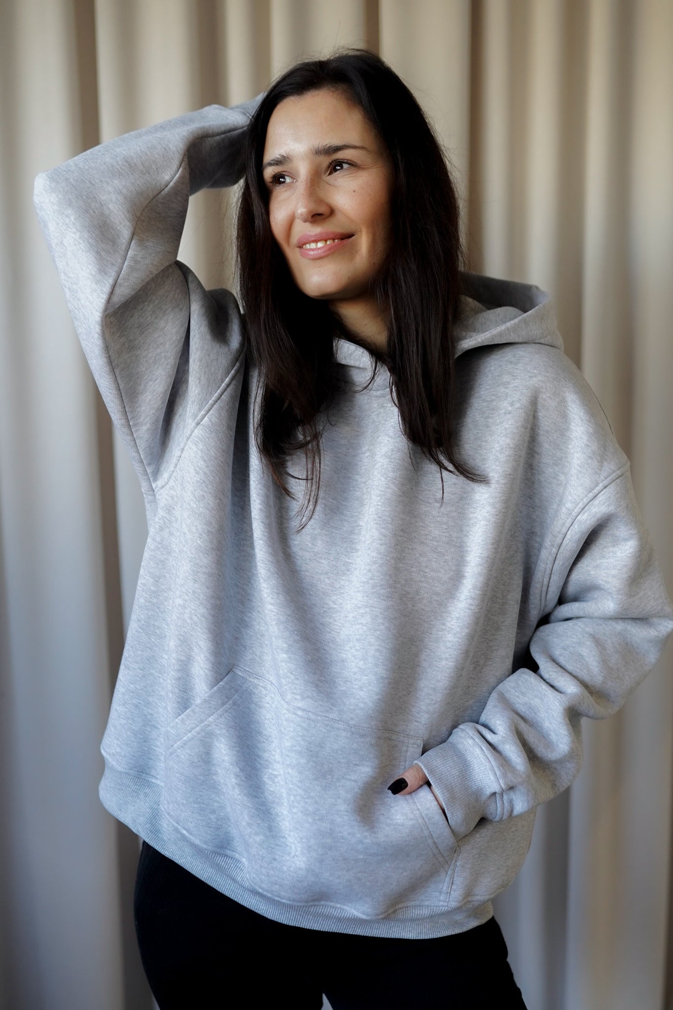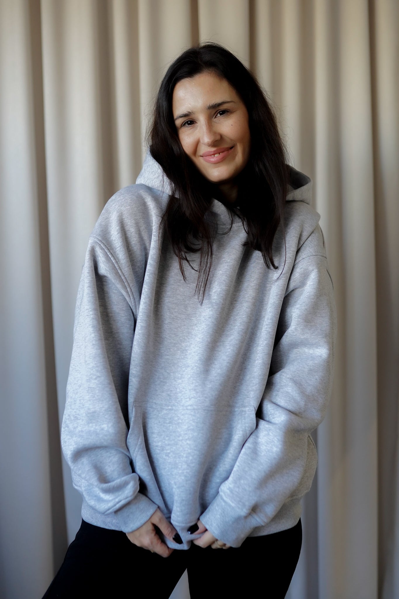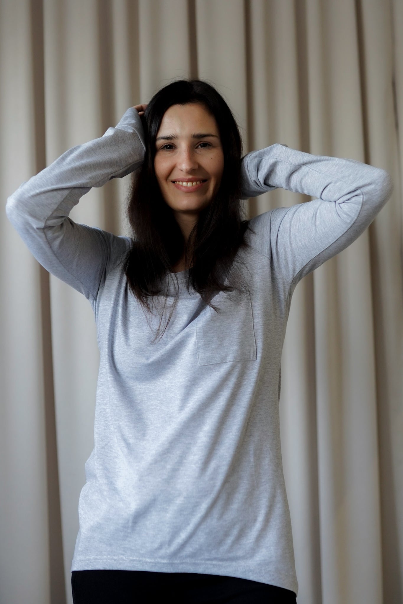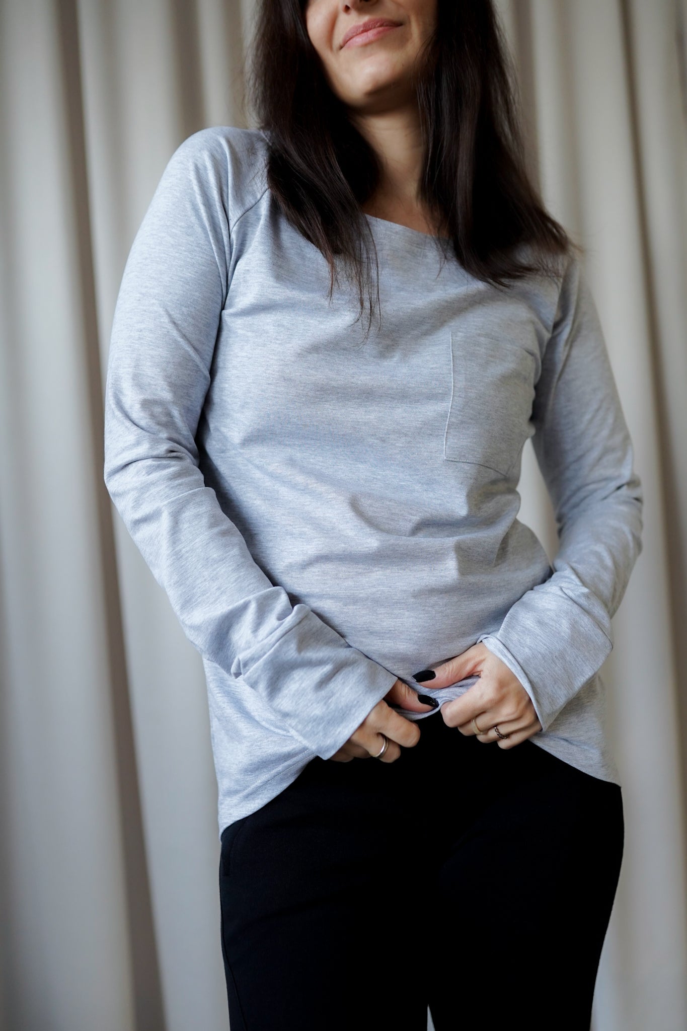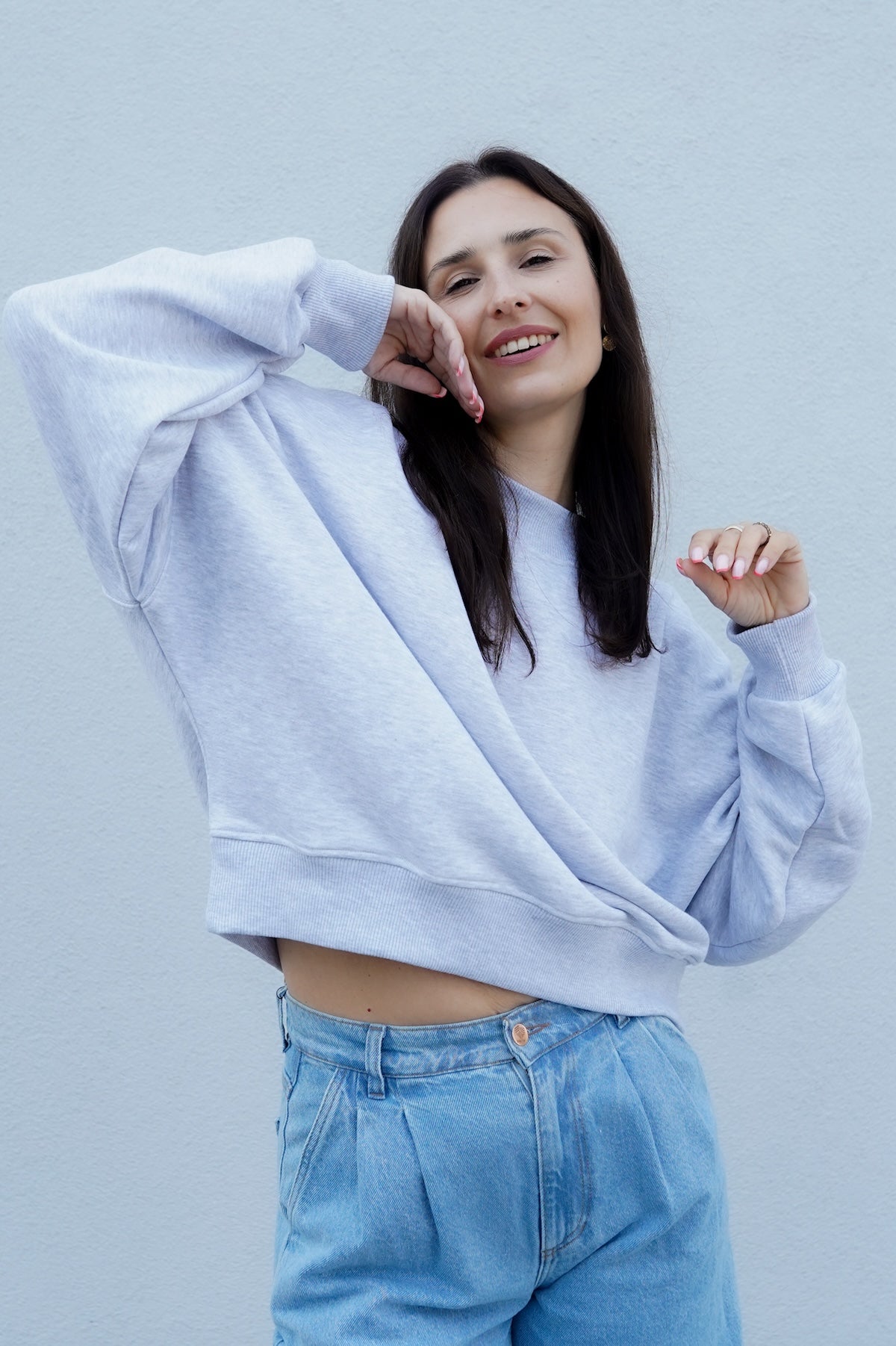 It has a timeless, slightly oversized, boxy cut, which, combined with muslin cotton, creates the perfect combination of casualness and femininity, definitely not only for summer. However, we had to spice up the classics. Nonchalantly widened, shorter sleeves with delicate cuffs and an asymmetric hem add character to it.