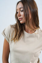 Which of us doesn't miss simple but neat-looking T-shirts? That's why Prosta Historia was created, a T-shirt with simple lines that efficiently combines femininity and casualness. Because on the one hand, it fits the figure perfectly and without unnecessary tightness and emphasizes the bust, and on the other hand, organic cotton ensures maximum comfort. An additional advantage are the rolled-up sleeves, which give it a distinctive character, and the slightly longer back makes it possible to wear it with both trousers and leggings. In our opinion, it will fit into any convention without any problems.