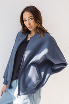 The Sporty Chic bomber jacket is our take on a sporty yet stylish look, not just for autumn. It has a relaxed fit with a slightly dropped shoulder line, and its wider sleeves not only add a touch of nonchalance but are also designed to allow for layering warmer pieces underneath.