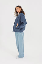 The fit and style are further enhanced by the cotton ribbing at the neck, cuffs, and hem, while the side pockets and aesthetic metal zip fastening add a touch of functionality.