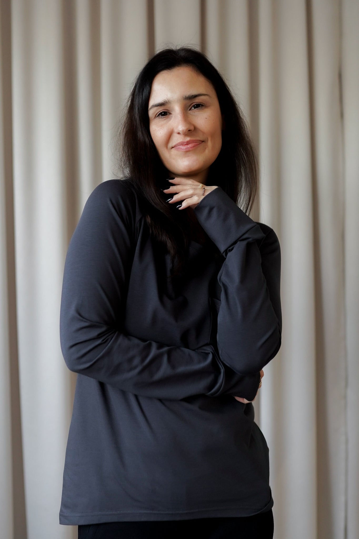 There are so many wearing options here. Feminine, with a flirtatious zipper, or typically sporty, zipping up to the neck, especially when the weather is unfavorable.