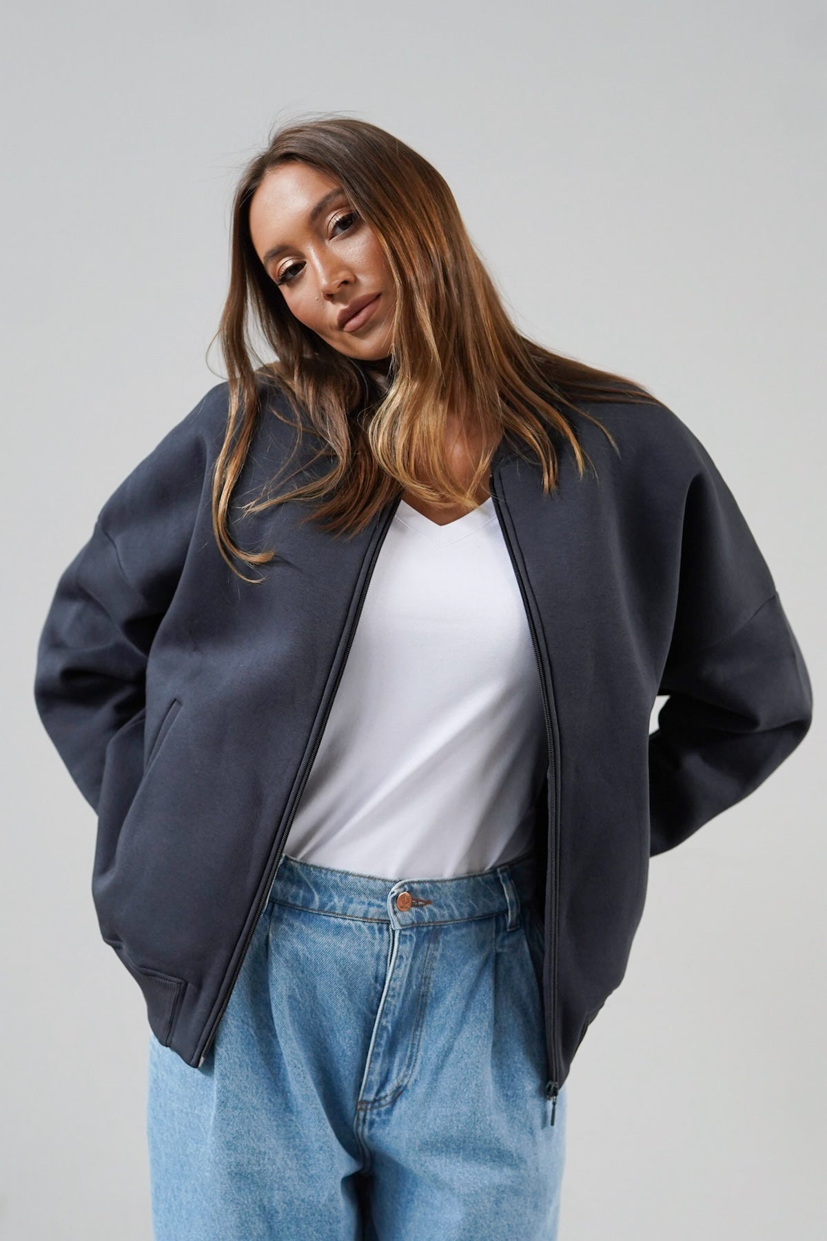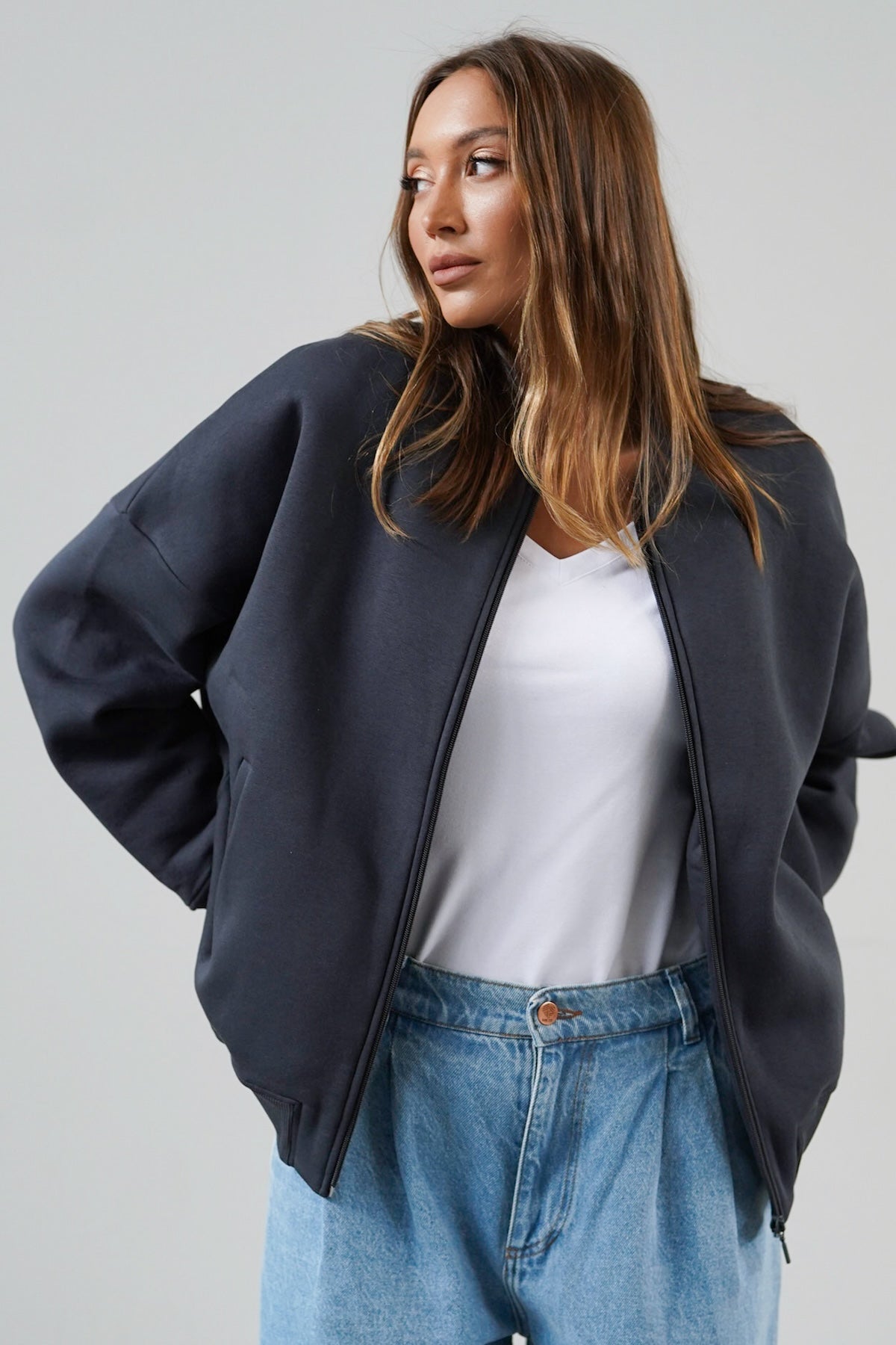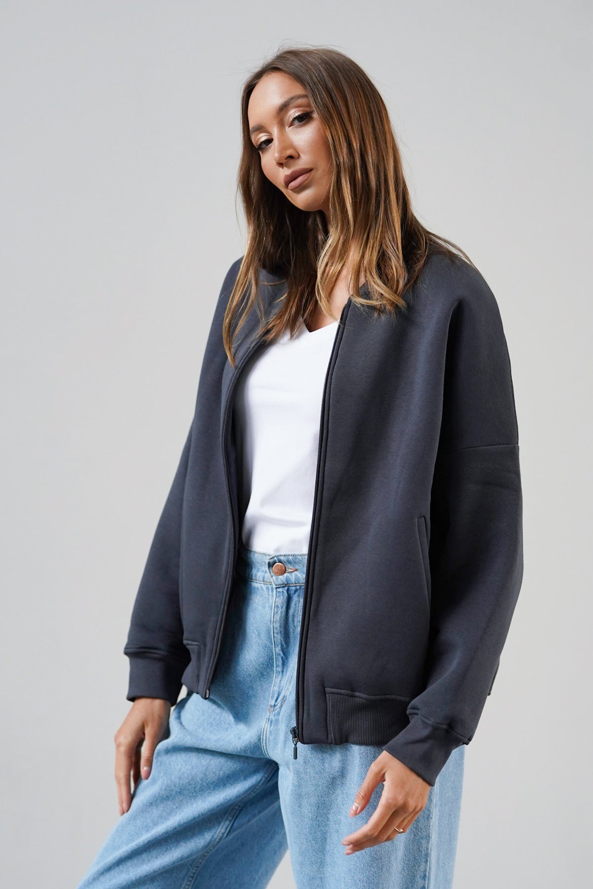 Sporty, due to its original and refined cut, will work well in various styles - with leggings, fitted jeans or sweatpants. It will add an urban flair, spice things up and will certainly complement your wardrobe. We already feel something that we will rarely be apart from her.