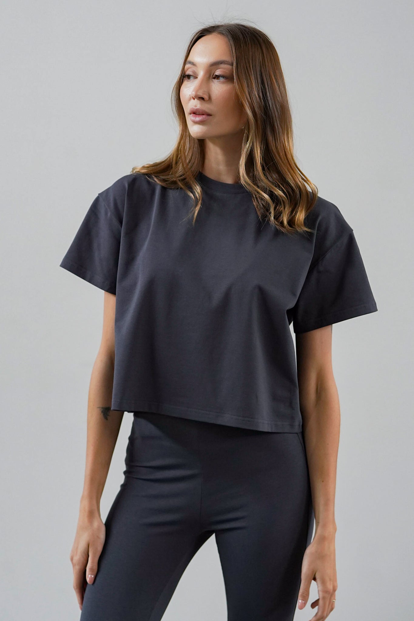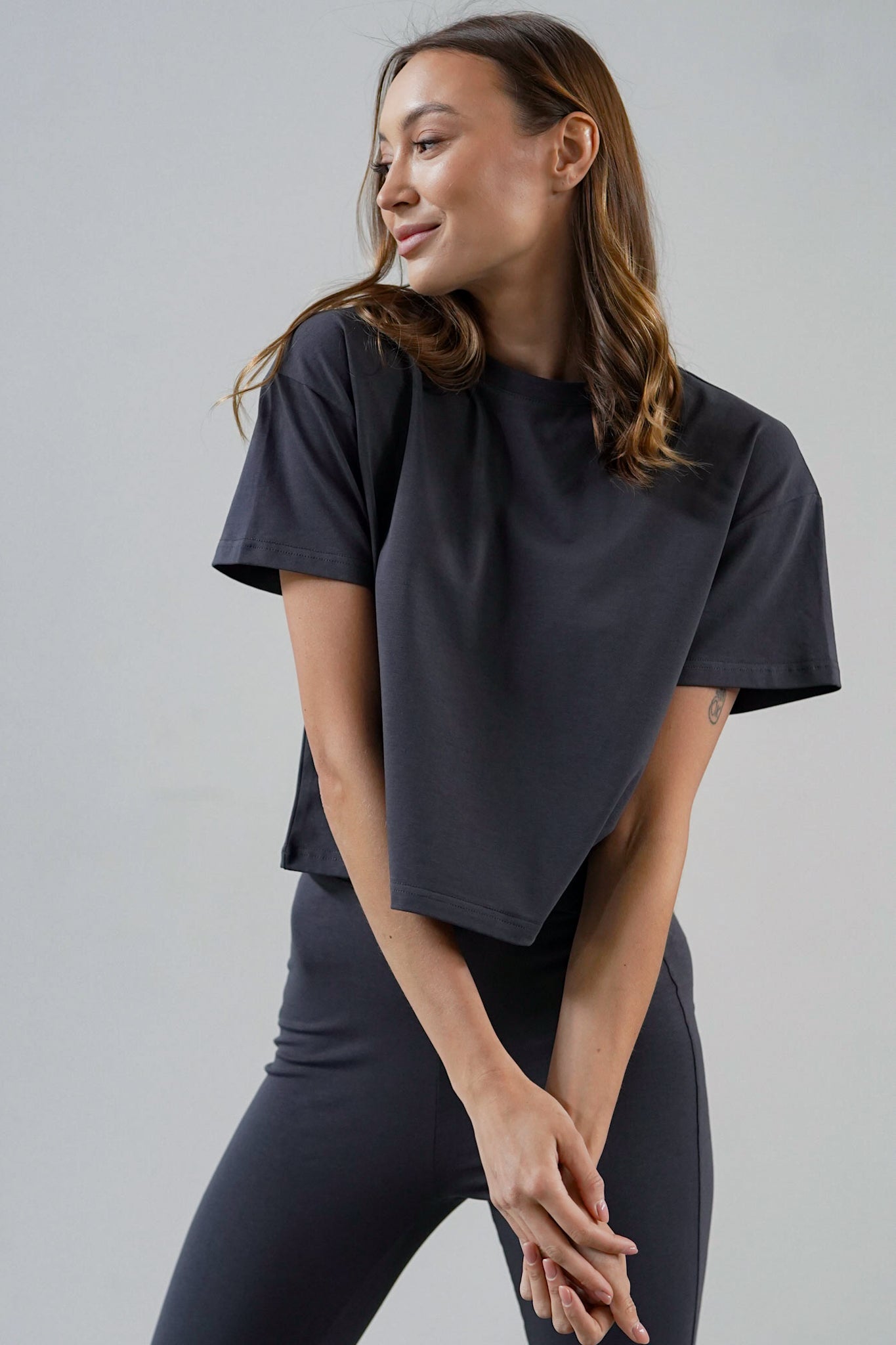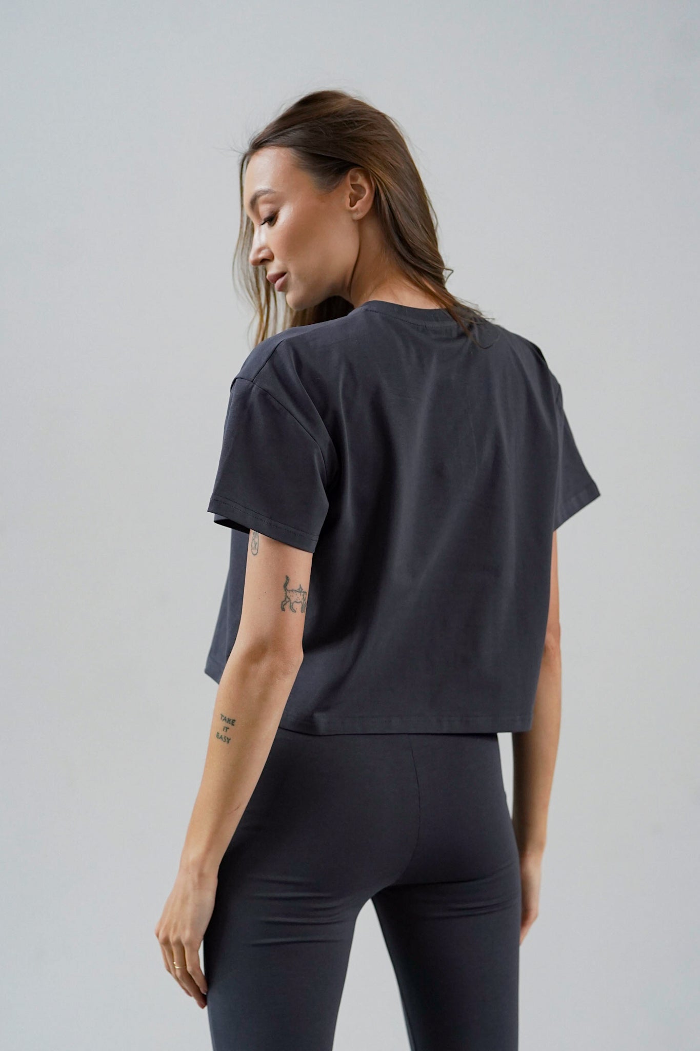 The material is high-quality, thick and pleasant to the touch cotton that literally hugs the body, which, combined with a simple and comfortable cut, makes you not want to take it off.