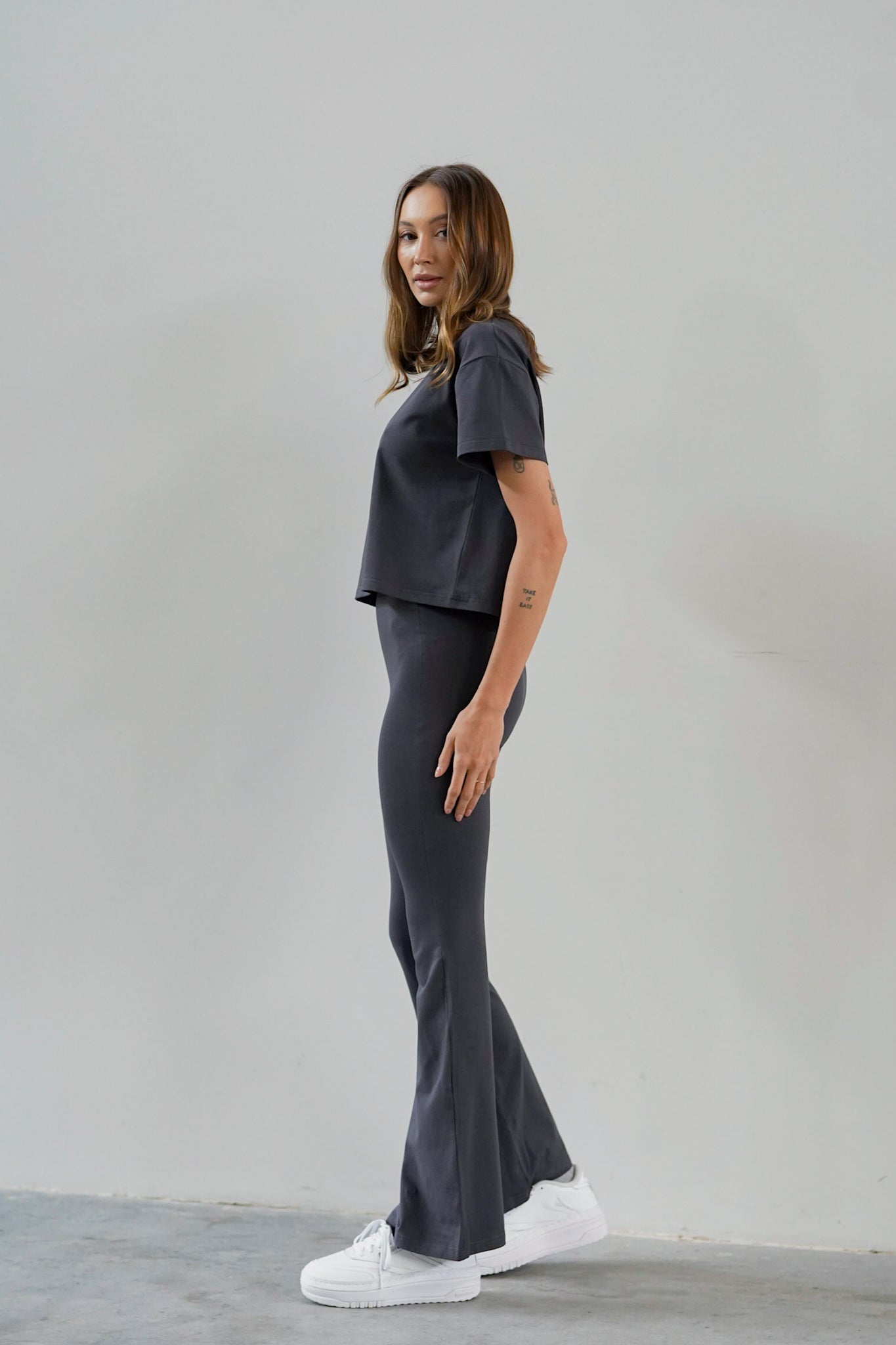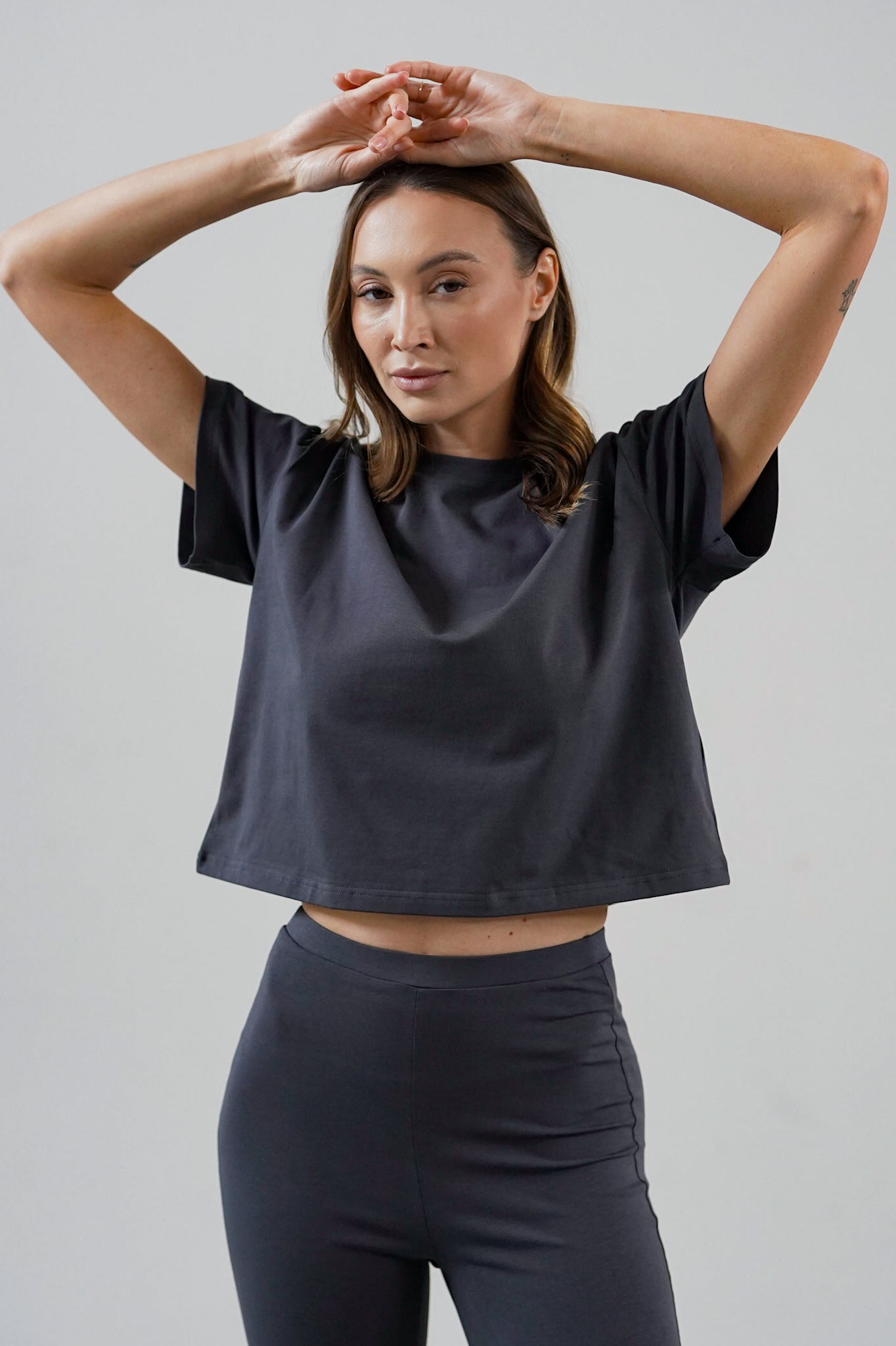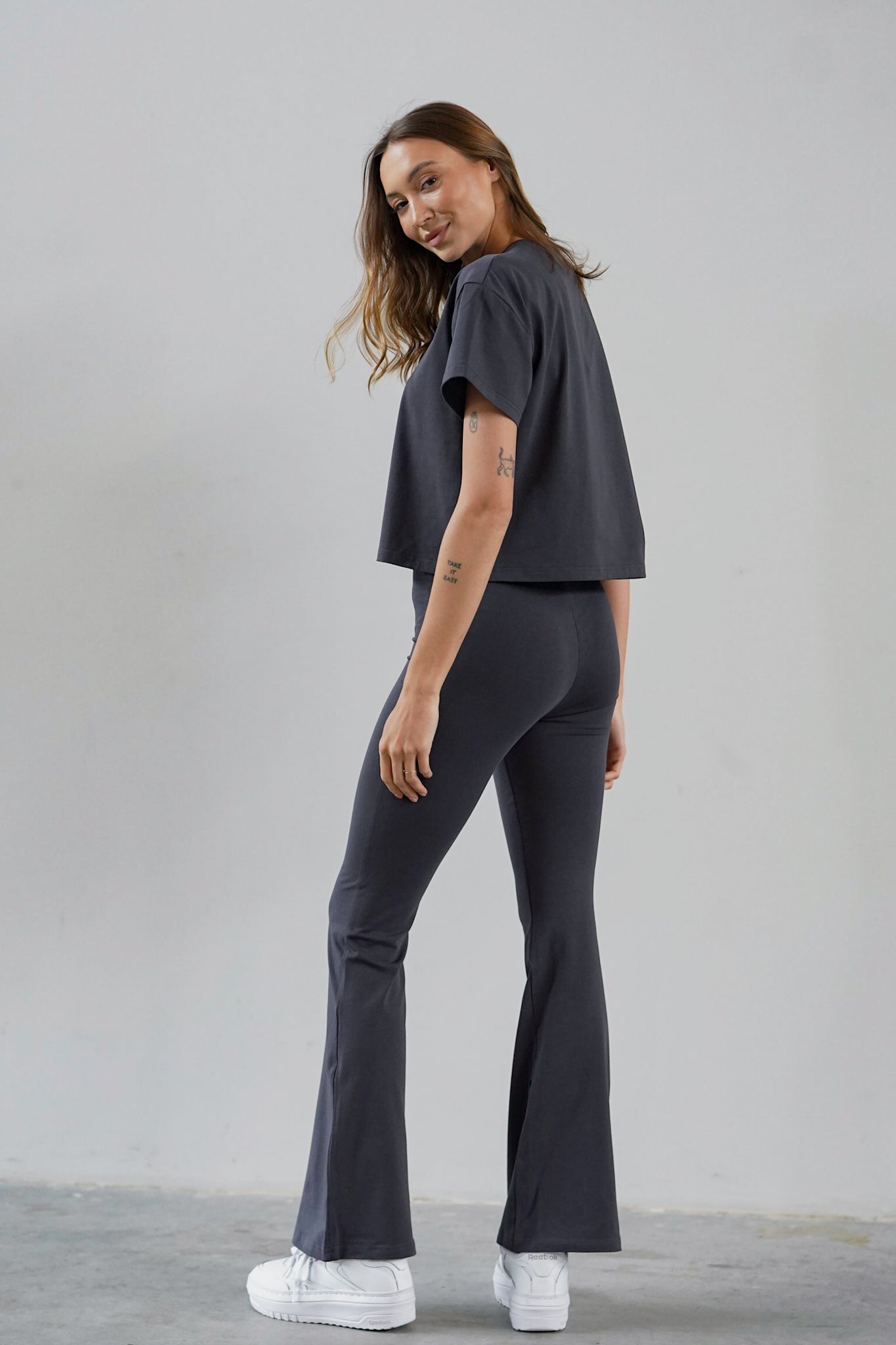 The material is high-quality, thick and pleasant to the touch cotton that literally hugs the body, which, combined with a simple and comfortable cut, makes you not want to take it off.