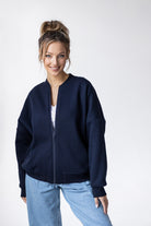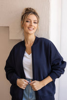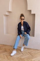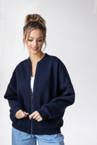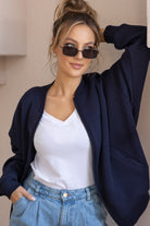 Sporty Chic Bomber Jacket Navy Blue
