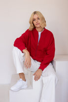 The Sporty Chic bomber jacket is our take on a sporty yet stylish look, not just for autumn. It has a relaxed fit with a slightly dropped shoulder line, and its wider sleeves not only add a touch of nonchalance but are also designed to allow for layering warmer pieces underneath.