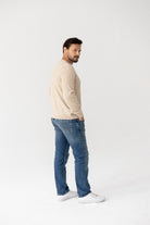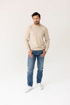 Sweter ma klasyczny krój – lekko dopasowany, ale nie opinający. Świetnie układa się na sylwetce, zapewniając swobodę ruchów i możliwość wygodnego noszenia na koszulę lub pod marynarkę. Okrągły dekolt, a także ściągacze przy mankietach i u dołu podkreślają jego uniwersalny charakter. Doskonale sprawdzi się zarówno w zestawieniu z dżinsami, jak i jako element eleganckiego stroju do pracy.