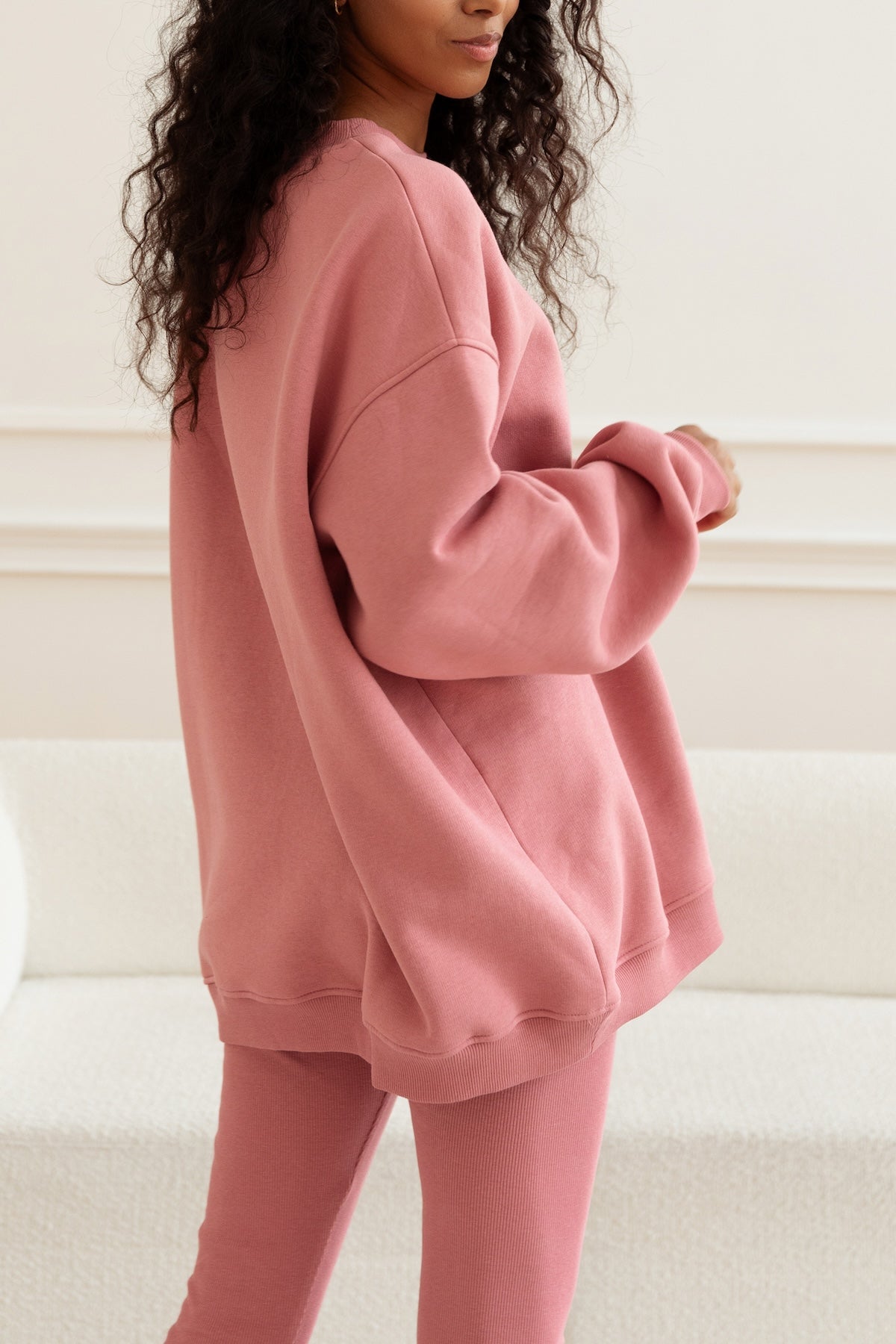 This cut is not just visually attractive, it’s also functional. The hoodie has a large hood, deep zipped pockets, a longer back, and a lining.