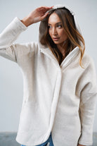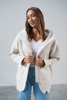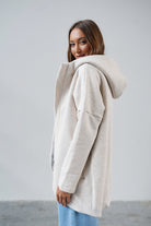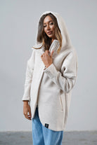 A new edition of our bestseller, meet our zipped coat No. 2, fastened with a two-way YKK zip, nicely hidden under a pleat of fabric. This cut is not just visually attractive, it’s also functional. The hoodie has a large hood, deep zipped pockets, a longer back, and a lining. You can wear it from dawn to dusk, and your imagination’s the limit when it comes to creating outfits. Perfect for work, for a walk, for a night out with friends, and for pretty much anything. Hoodie No. 2 is available in 3 sizes: XXS/XS, S/M, and L/XL. In this case, we recommend choosing your usual size.