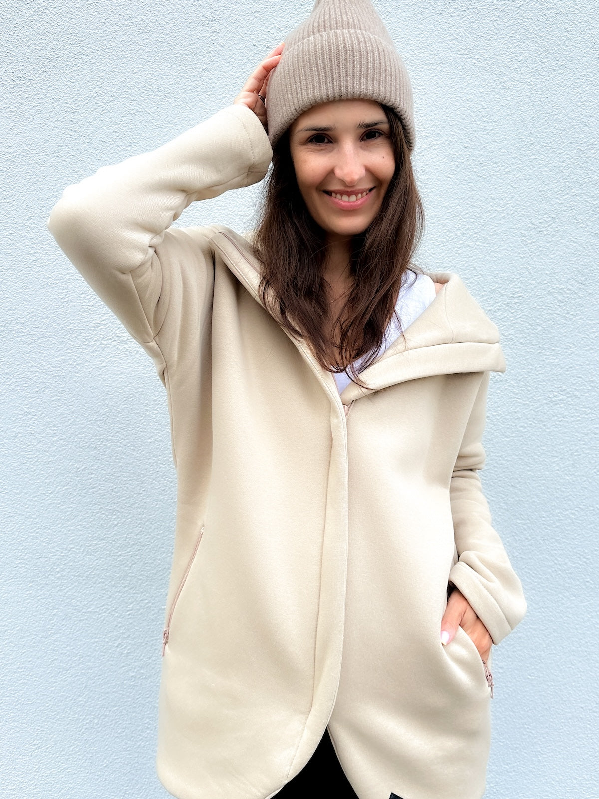 A new edition of our bestseller, meet our zipped coat No. 2, fastened with a two-way YKK zip, nicely hidden under a pleat of fabric.