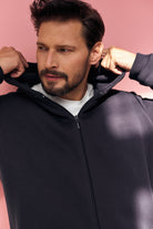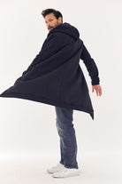 Our debut in men’s clothing. The sweatshirt coat is long enough to keep you warm if there’s a chill in the air, it doesn’t restrict movement, and – most importantly – its straight-line design makes you look more slender. It also has deep, zipped pockets on the sides and a large hood, which makes the coat versatile and practical. We added lining as well, which creates an elegant look and sets the bar high in the category of the perfect sweatshirt (coat)!
