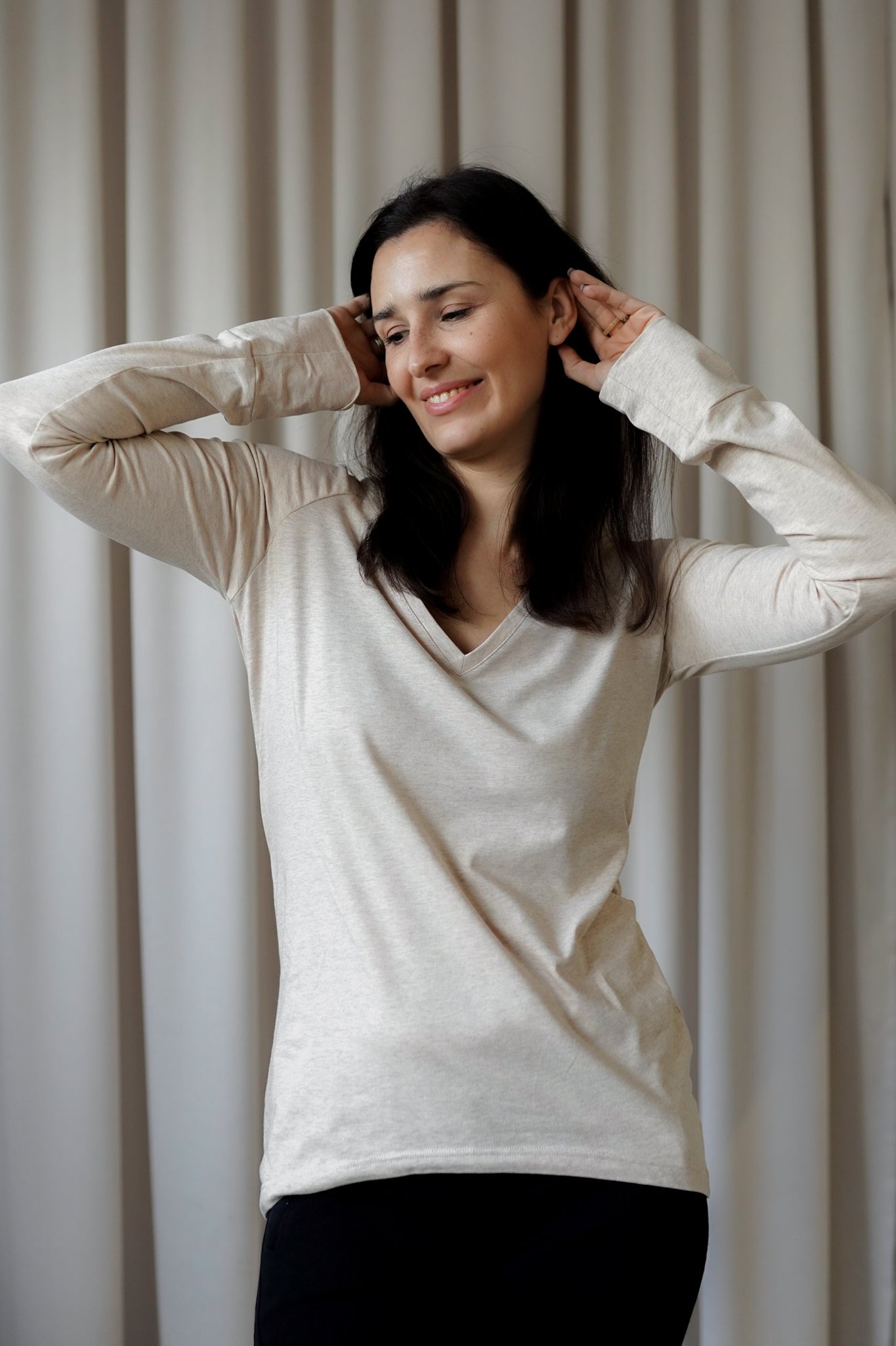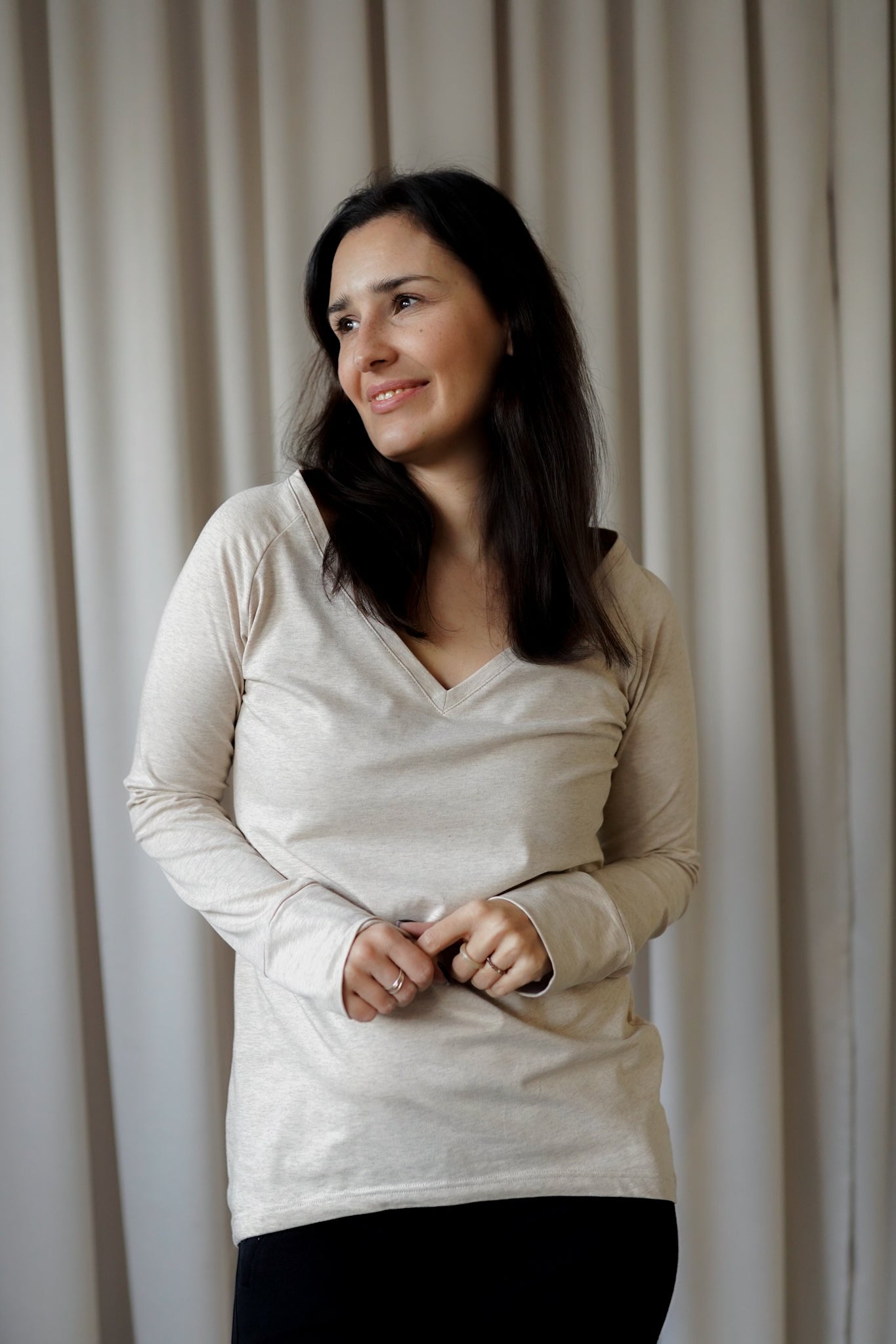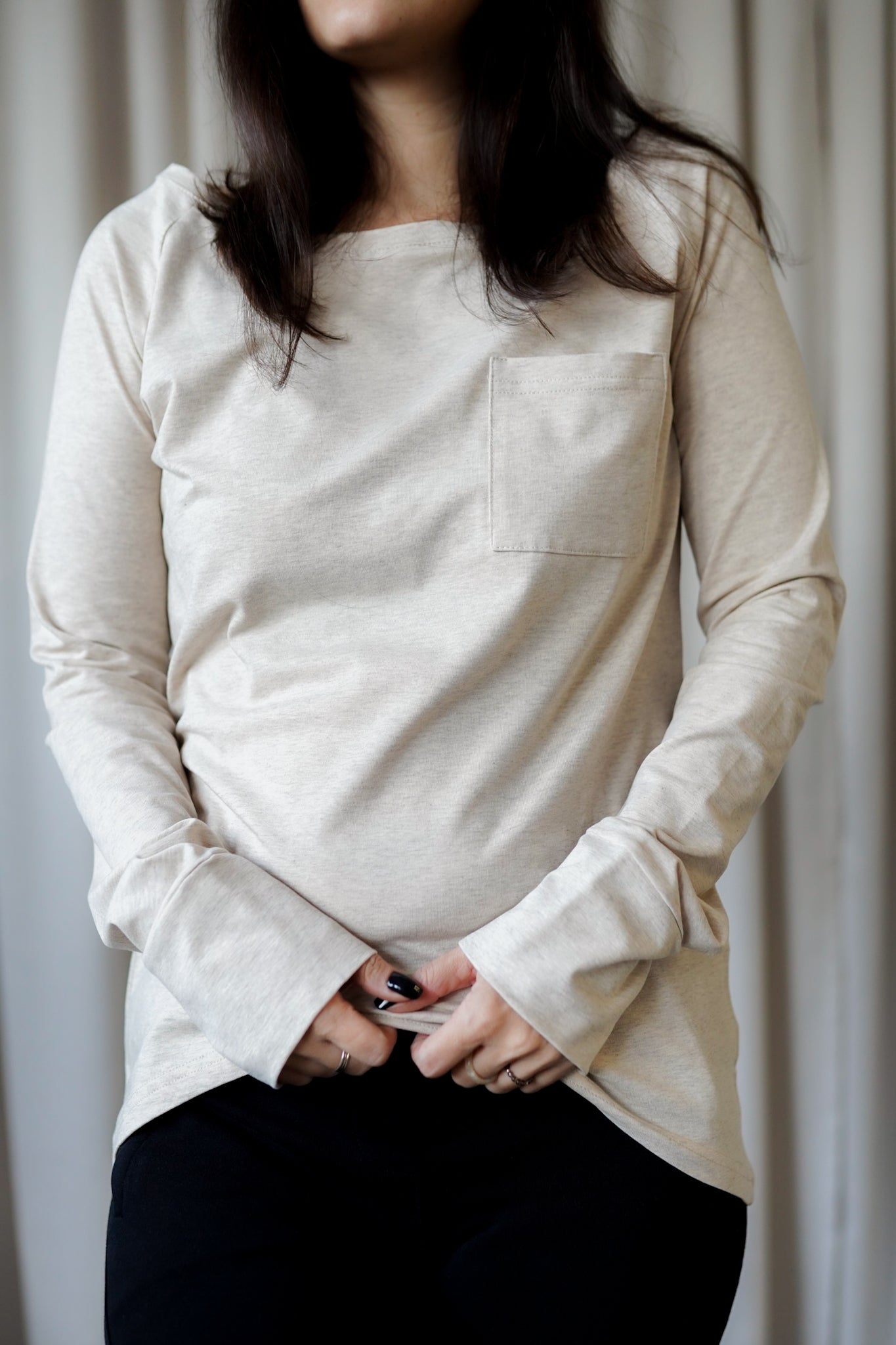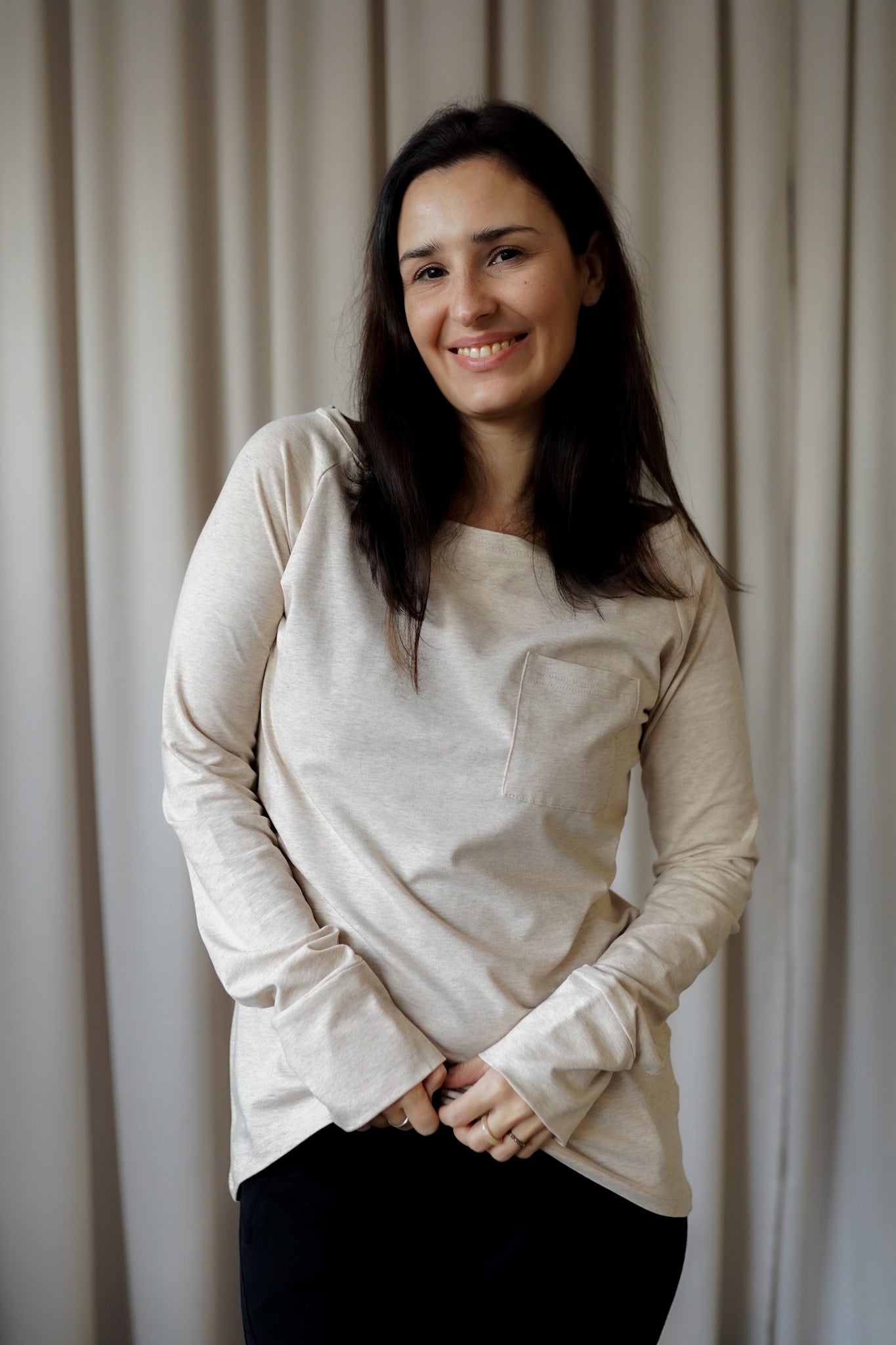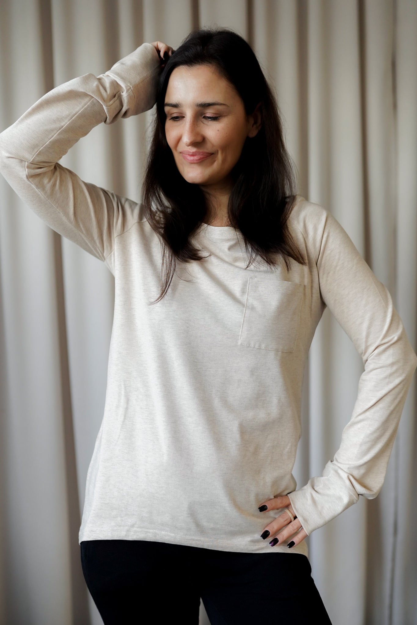 It is distinguished by its lowered shoulder line and wider, puffy sleeves, which literally add style and immediately attract attention. Additionally, a loose, oversized and slightly nonchalant cut, although shorter because it reaches just to the hips. The bottom is finished with a wider cuff, which also enhances the sleeves and neckline. Effect? Comfort has not looked so feminine and original for a long time.
