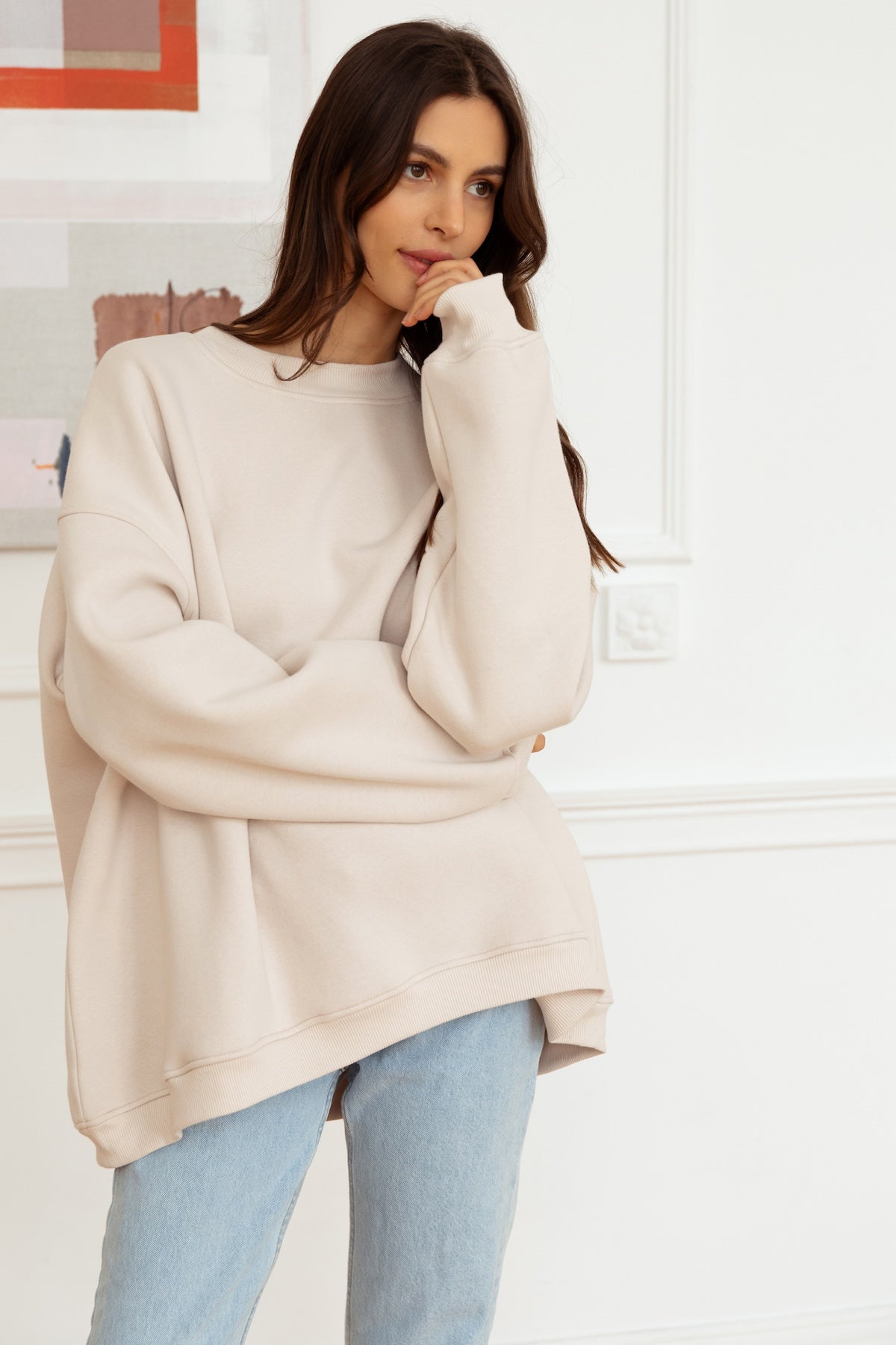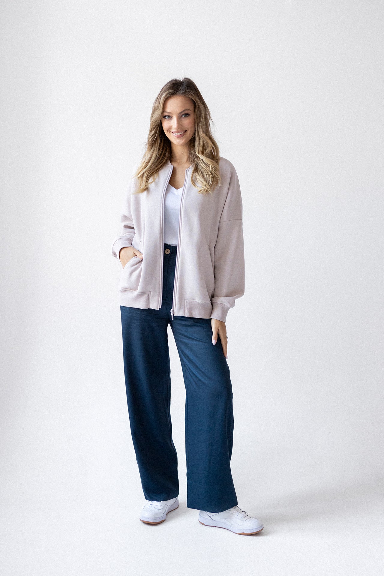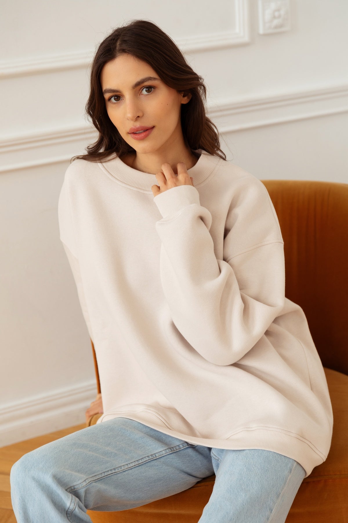 A word of advice: our sweatshirt coat is oversized, so it’s best to choose one size smaller than usual. So if you’re an M size, go for an S, and if you’re an S size, opt for an XS.
