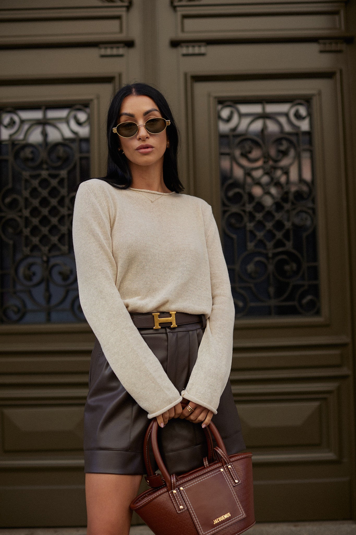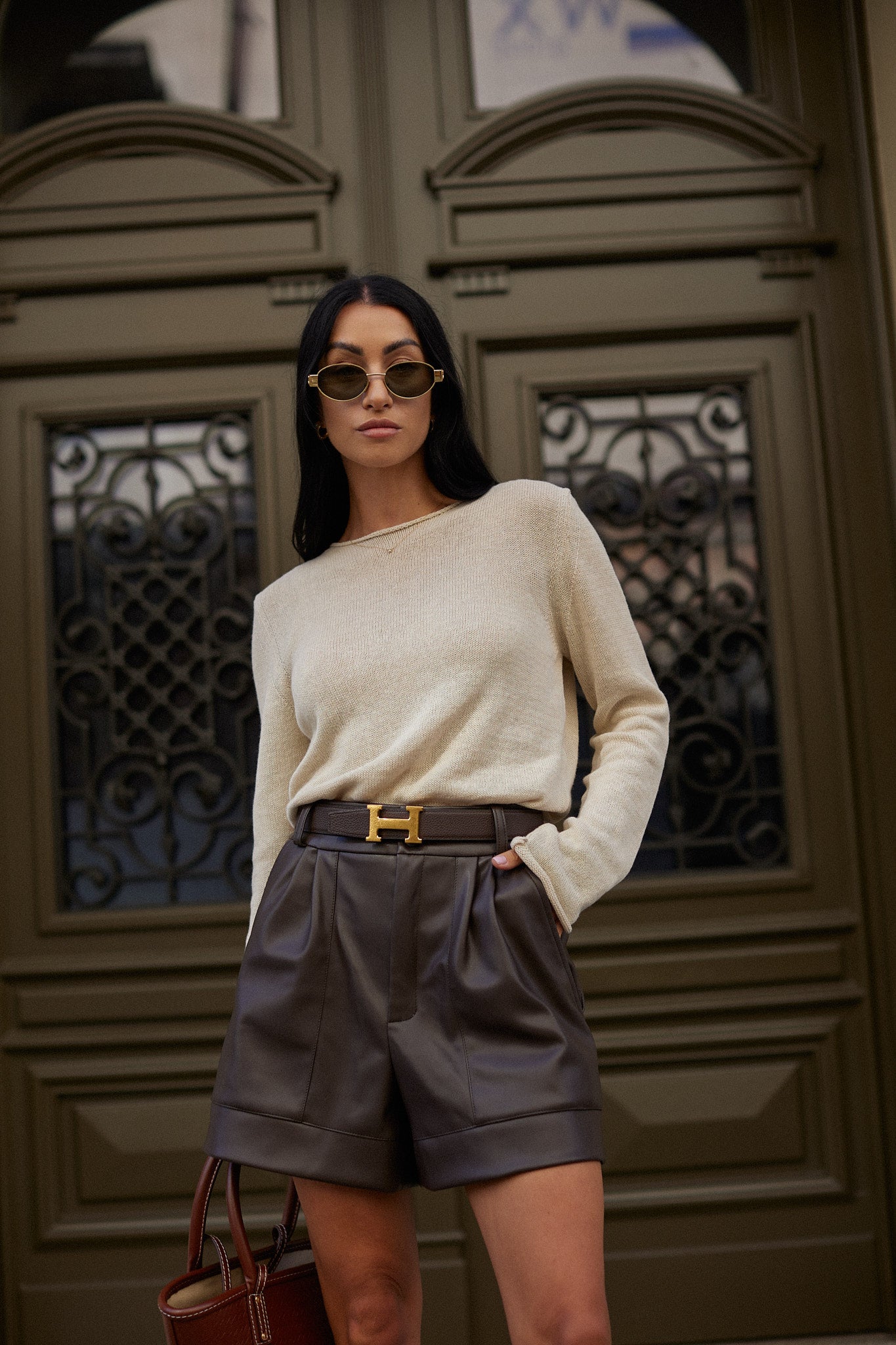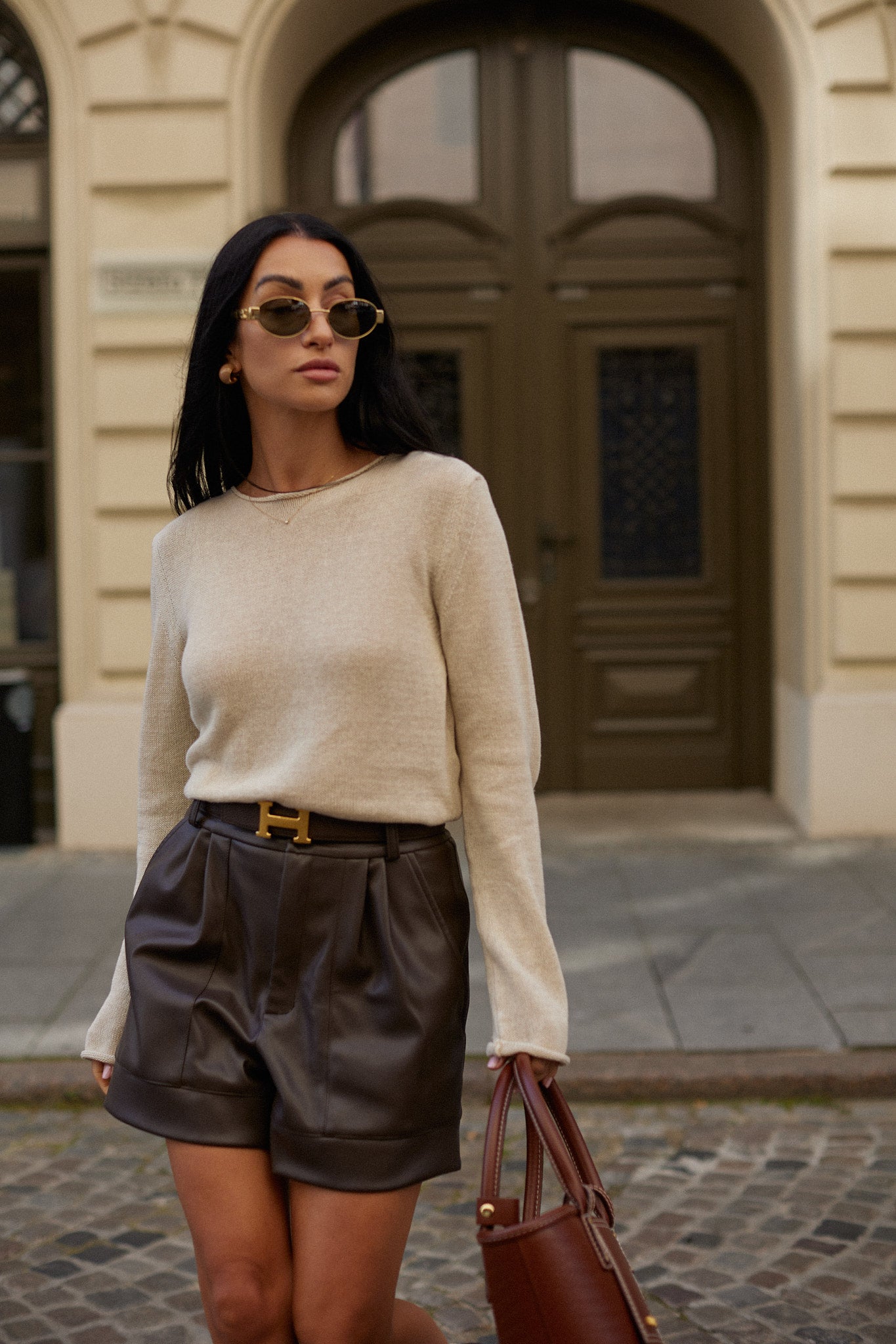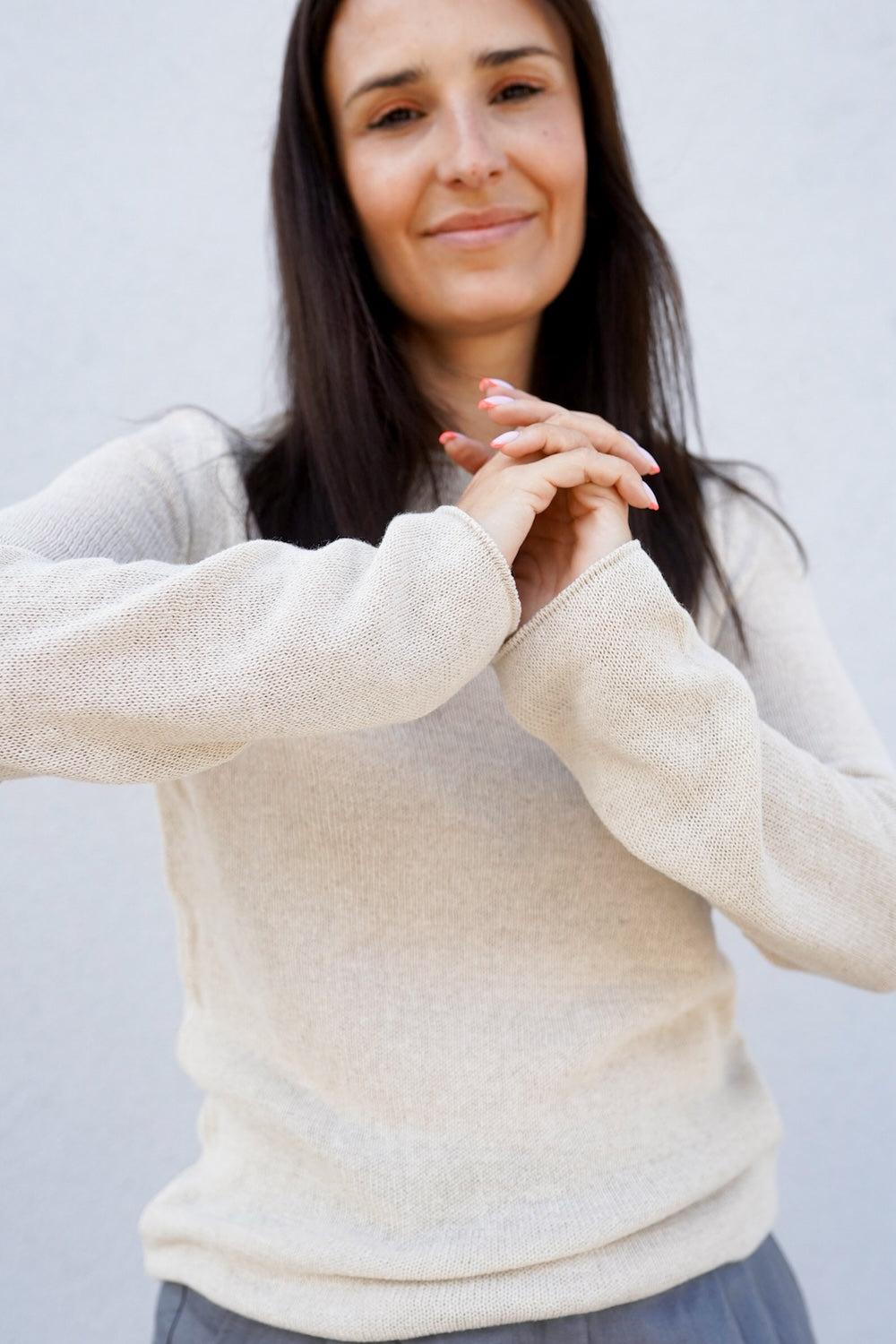 It has a classic, slightly oversized cut, a semi-circular neckline and a delicate cuff, thanks to which it will work well in any styling. The longer sleeves add nonchalance, and the original texture attracts attention - this is due to the delicate blend of linen and cotton from which it was made. It will easily spice up stylings, adding them character - it will look great with our linen Girlboss trousers, and for everyday with Lucy jeans or your favorite shorts.