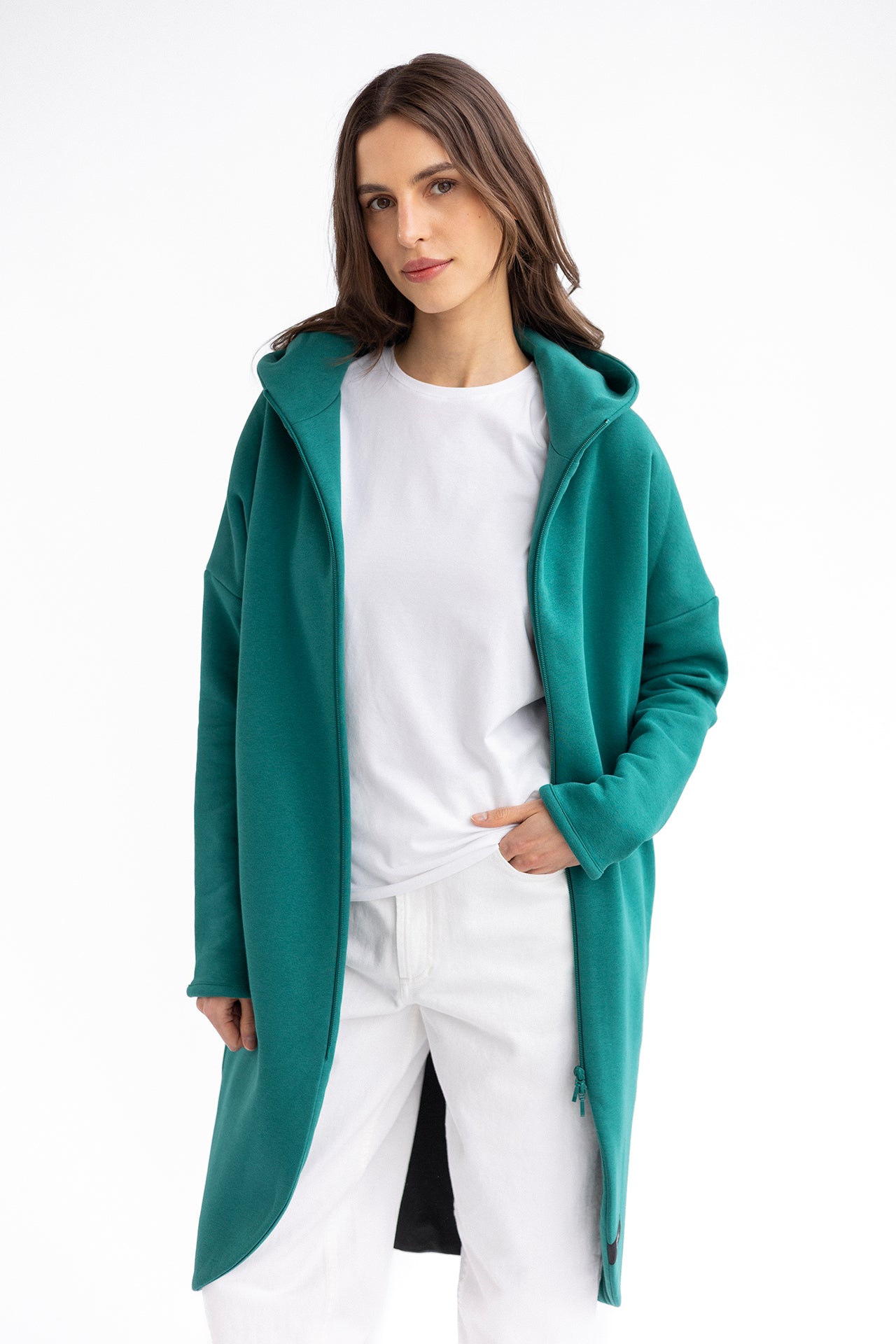 They have a classic, universal cut that attracts attention with its precise finish and attention to detail. We're talking about clever pleats that not only add nonchalance, but also make them fit perfectly in motion. In addition, a high waist emphasizing the waist and a length just above the knee, thanks to which they maintain a formal style and additionally lengthen the legs. We also didn't forget about the pockets, and we aesthetically rolled up the legs. Effect? Comfort hasn't looked so elegant and feminine for a long time.