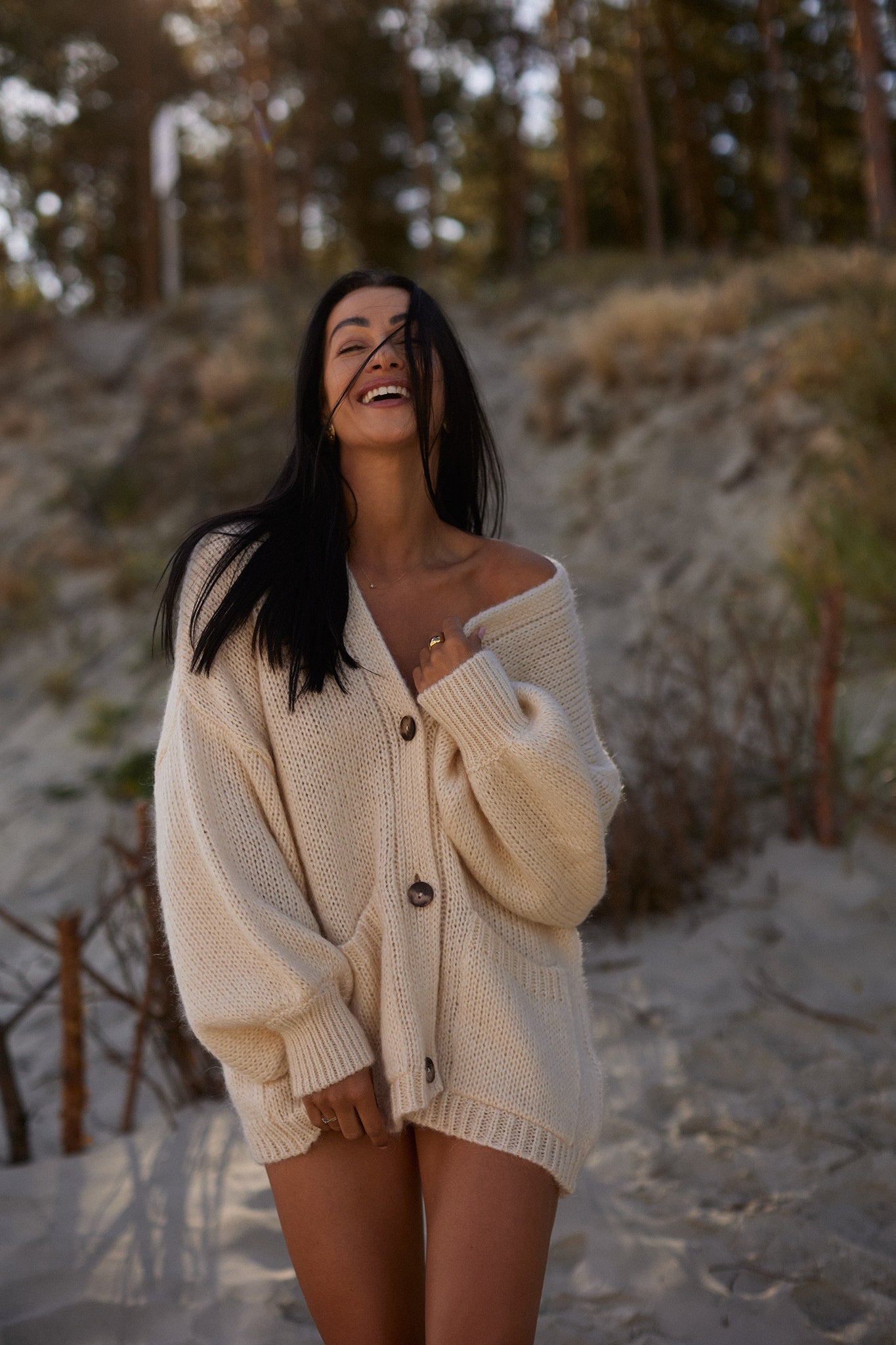 The Moher Lover Cardigan will wrap around your body and complement your outfit on colder days. It's all down to the fabric – a unique blend of merino extra fine wool, kid mohair and polyamide, which makes it not only incredibly pleasant to the touch, but also has an original, non-flat texture, beautifully turning up the outfits. In this case, the polyamide has a fixing effect and will ensure that the cardigan stays with you for longer and is less likely to pill.