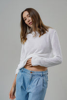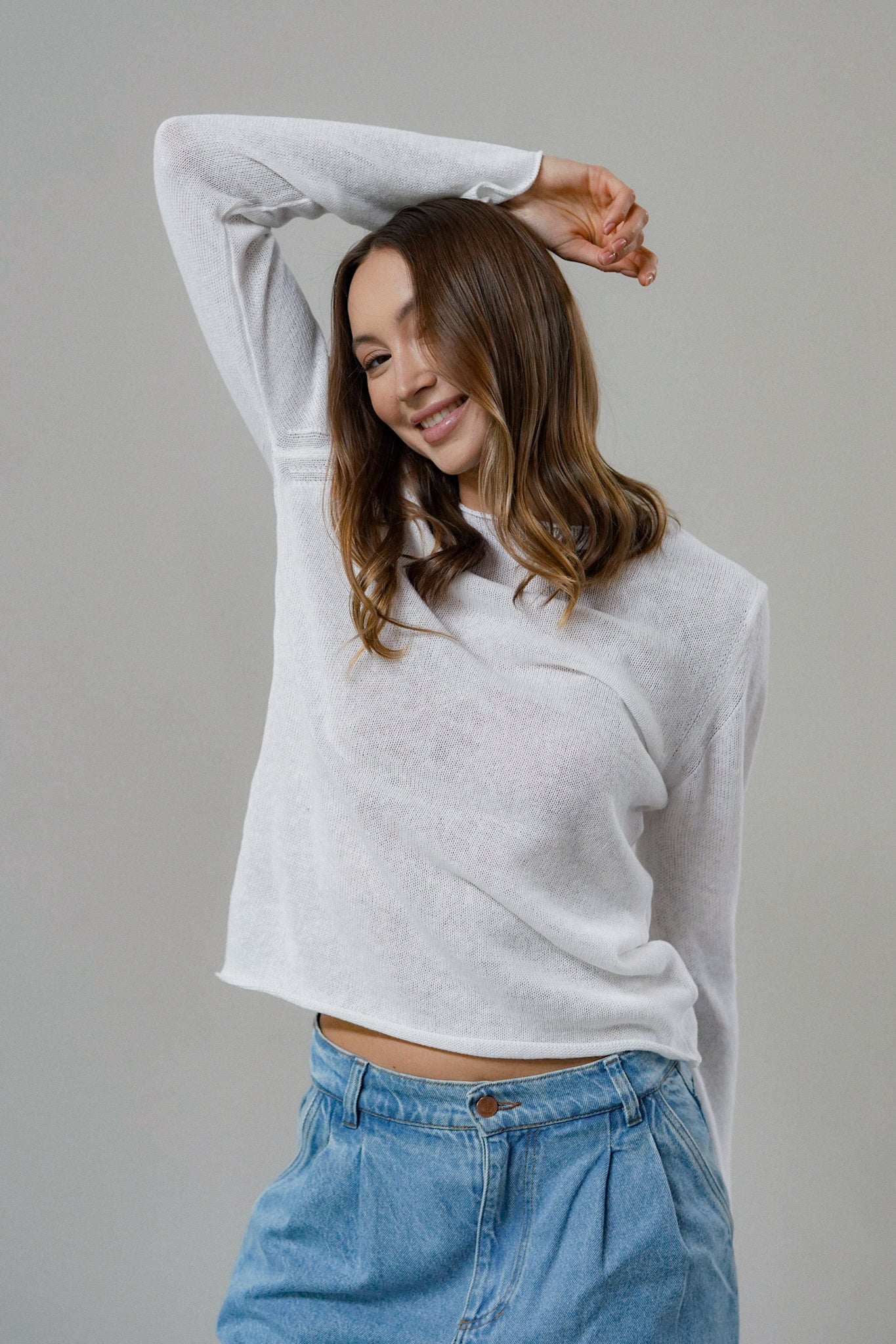 It has a classic, slightly oversized cut, a semi-circular neckline and a delicate cuff, thanks to which it will work well in any styling. The longer sleeves add nonchalance, and the original texture attracts attention - this is due to the delicate blend of linen and cotton from which it was made. It will easily spice up stylings, adding them character - it will look great with our linen Girlboss trousers, and for everyday with Lucy jeans or your favorite shorts.