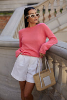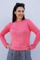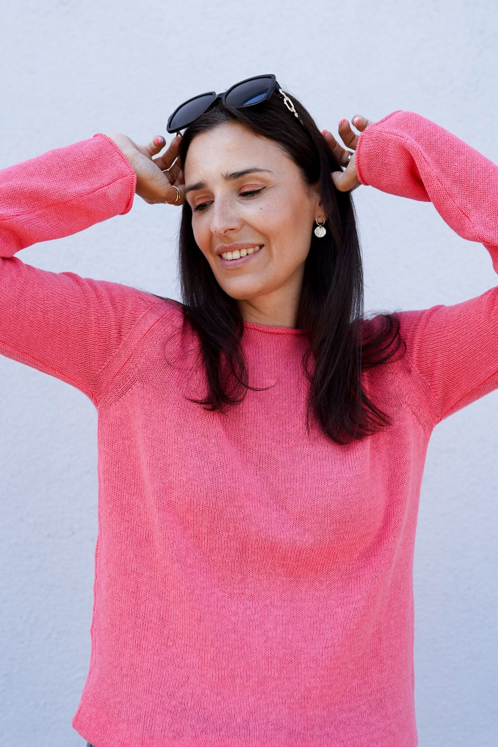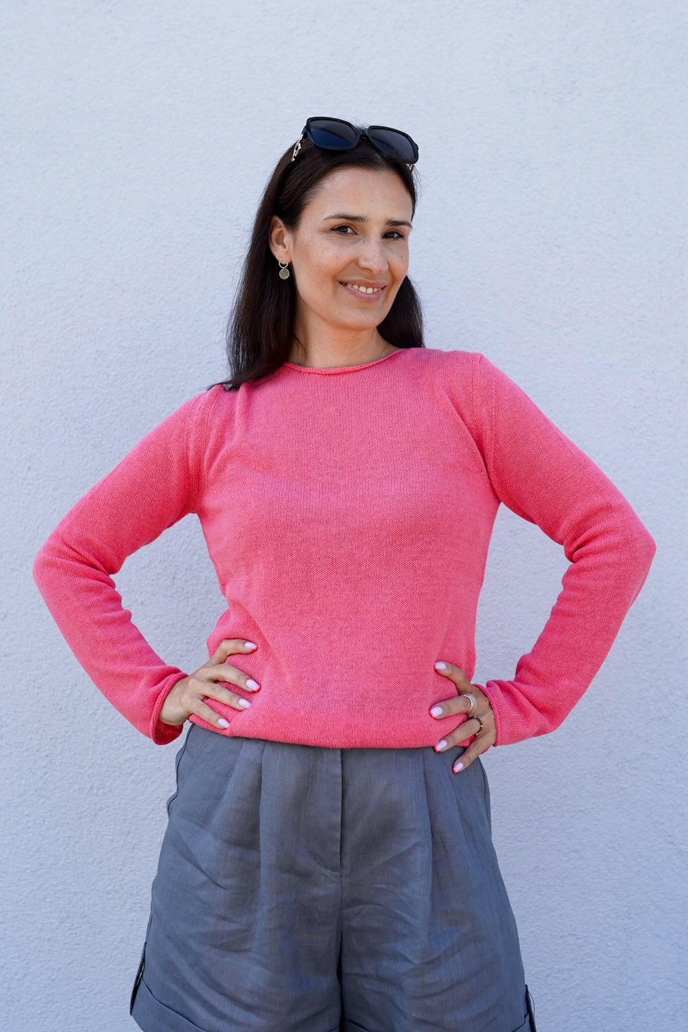 It has a classic, slightly oversized cut, a semi-circular neckline and a delicate cuff, thanks to which it will work well in any styling. The longer sleeves add nonchalance, and the original texture attracts attention - this is due to the delicate blend of linen and cotton from which it was made. It will easily spice up stylings, adding them character - it will look great with our linen Girlboss trousers, and for everyday with Lucy jeans or your favorite shorts.