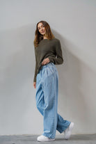 It has a classic, slightly oversized cut, a semi-circular neckline and a delicate cuff, thanks to which it will work well in any styling. The longer sleeves add nonchalance, and the original texture attracts attention - this is due to the delicate blend of linen and cotton from which it was made. It will easily spice up stylings, adding them character - it will look great with our linen Girlboss trousers, and for everyday with Lucy jeans or your favorite shorts.
