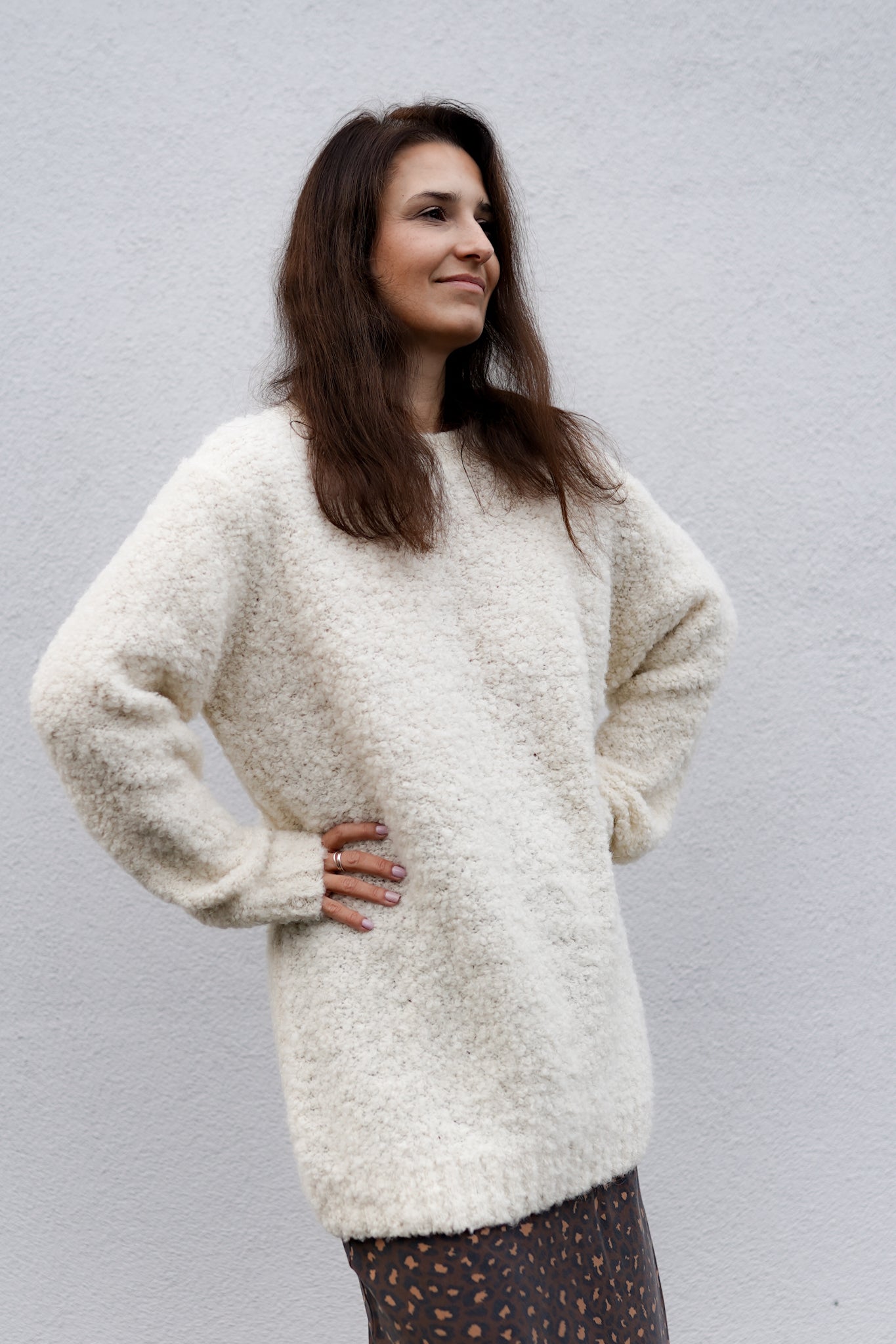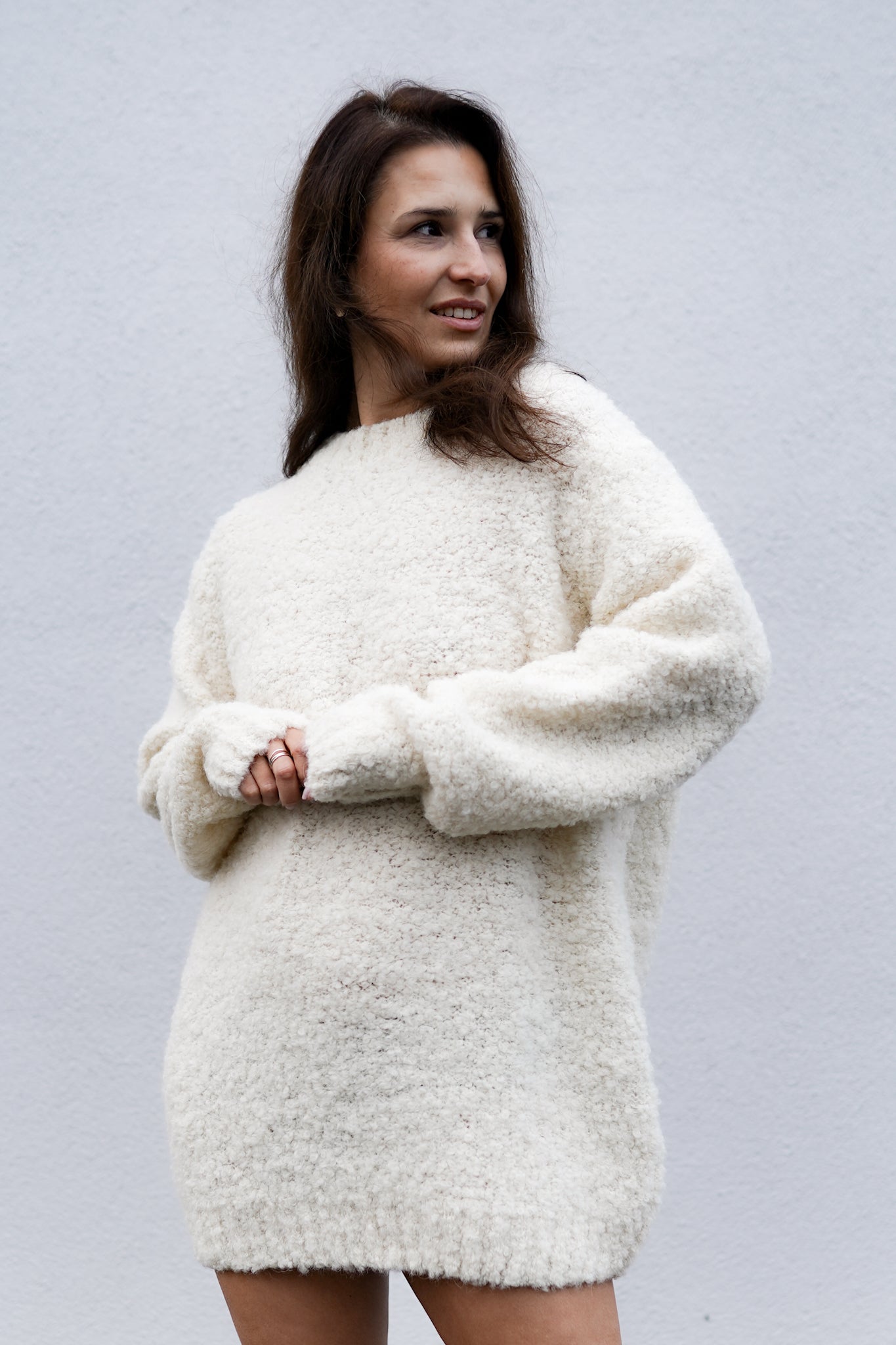 In addition, refined finishes, a slightly oversized cut, but also a much longer length. All this with comfort and versatility of use in various styles in mind. And so you can wear Buckle Hug Long like a sweater dress, completely alone, with high boots or your favorite snow boots, but also combine it with fitted jeans, throw it over a skirt or leggings. It captivates in every version.
