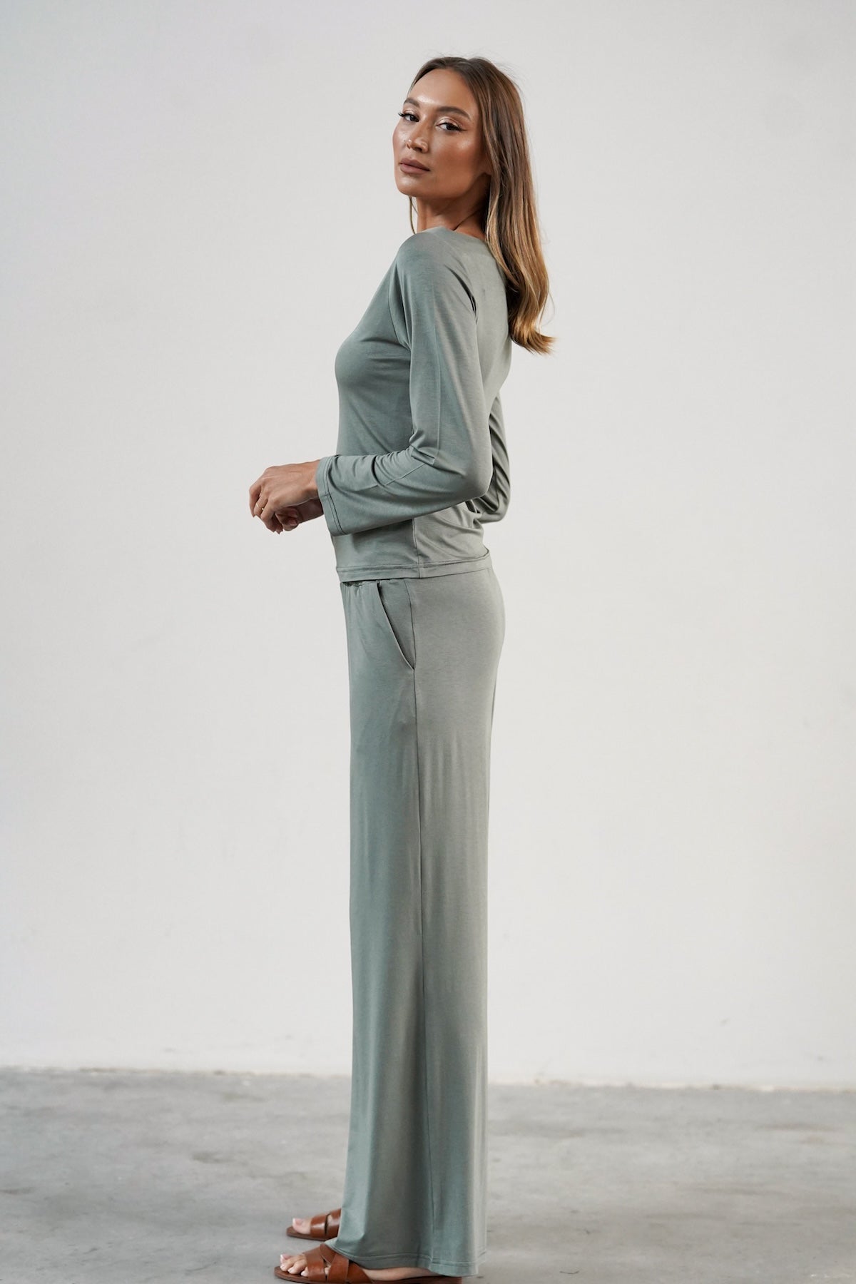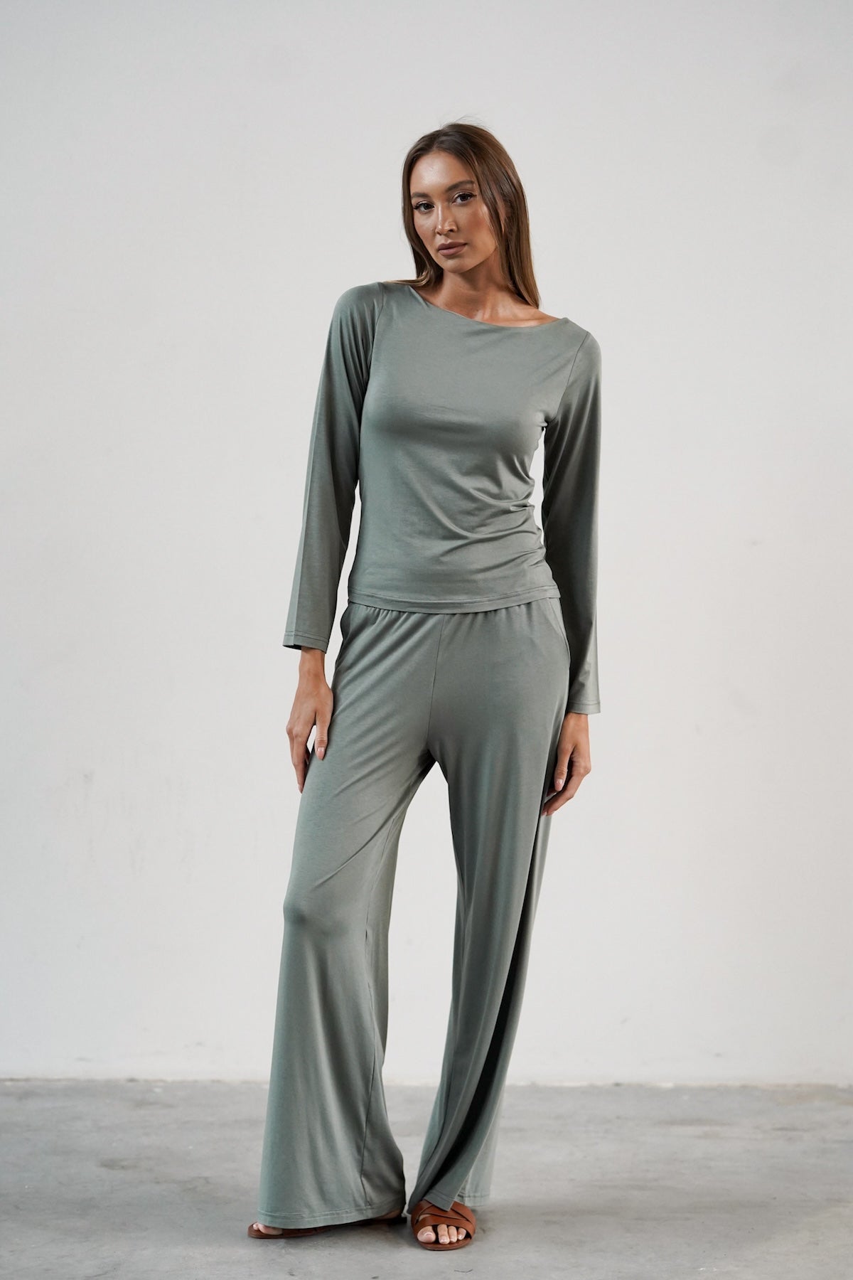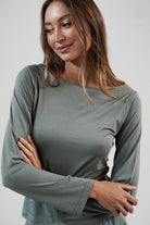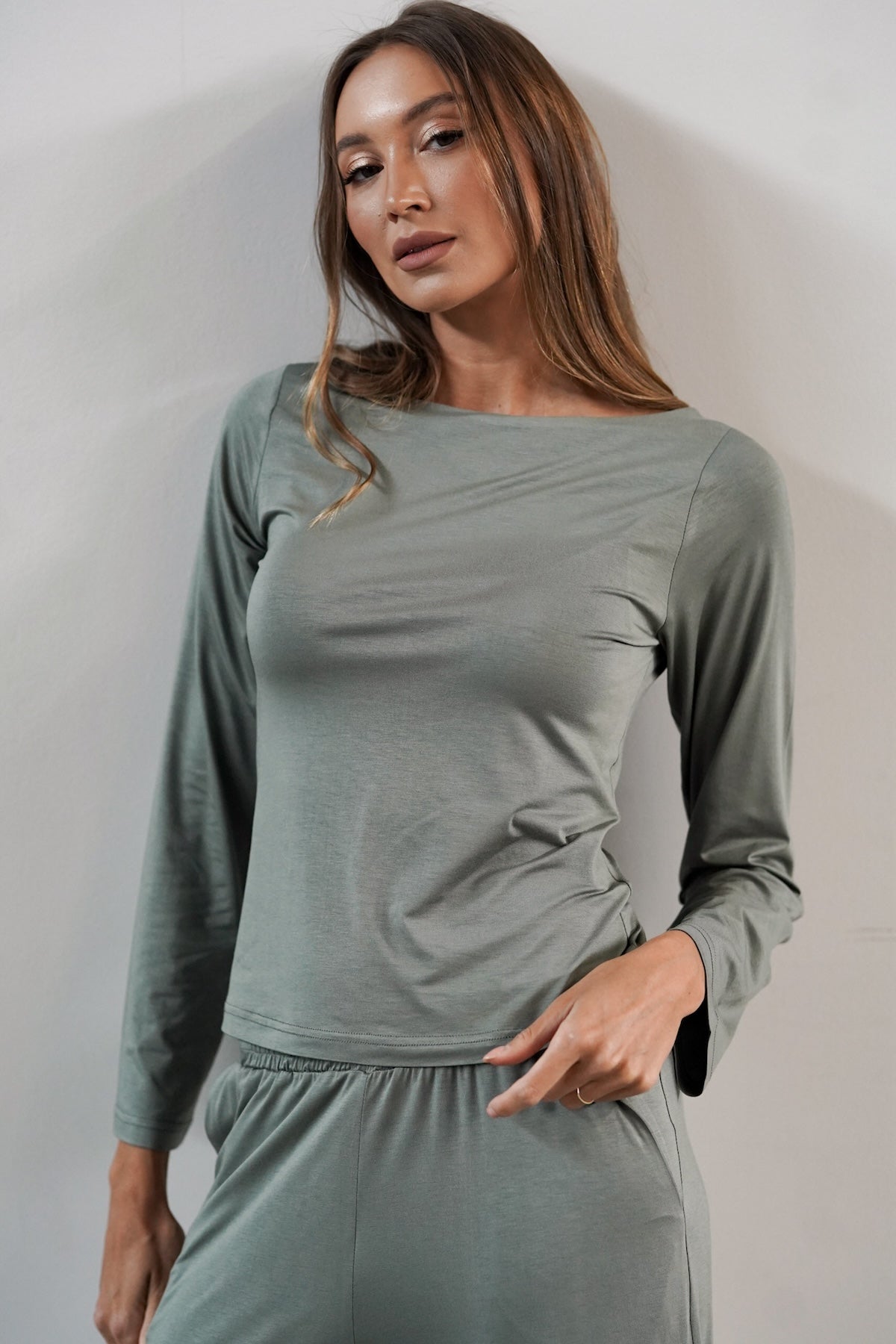 Jej luźniejszy fason miękko układa się na sylwetce, nie opinając się, a wyłącznie subtelnie podkreślając jej kształt. Do tego proste linie, długi rękaw i klasyczny dekolt w łódkę bez zbędnych detali tworzą formę, która daje poczucie komfortu – także tego estetycznego.
