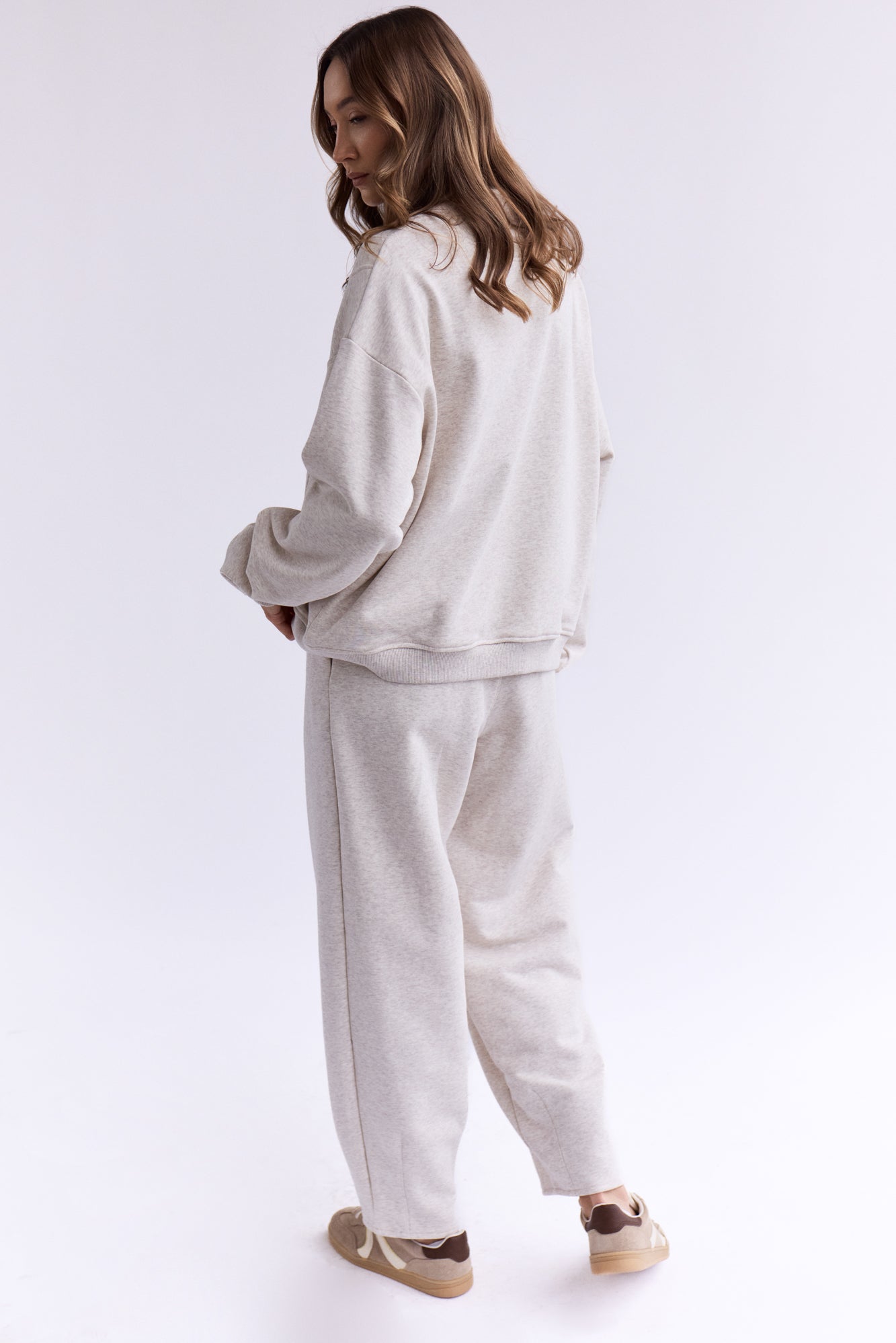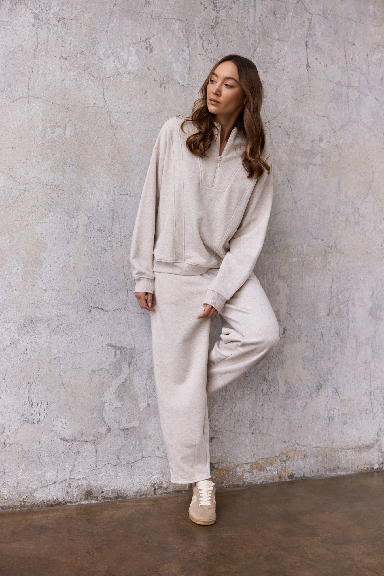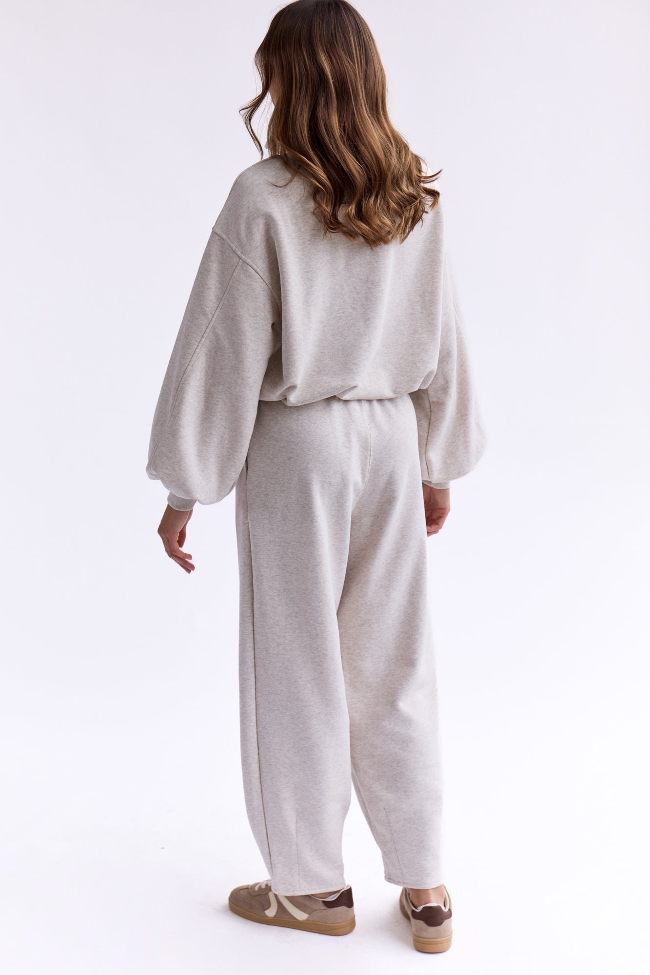 Ribbed, elastic cotton with a cuff not only cleverly lengthens and slims the legs thanks to its texture, but also fits perfectly to the body. Additionally, attention to detail and aesthetic finishes.