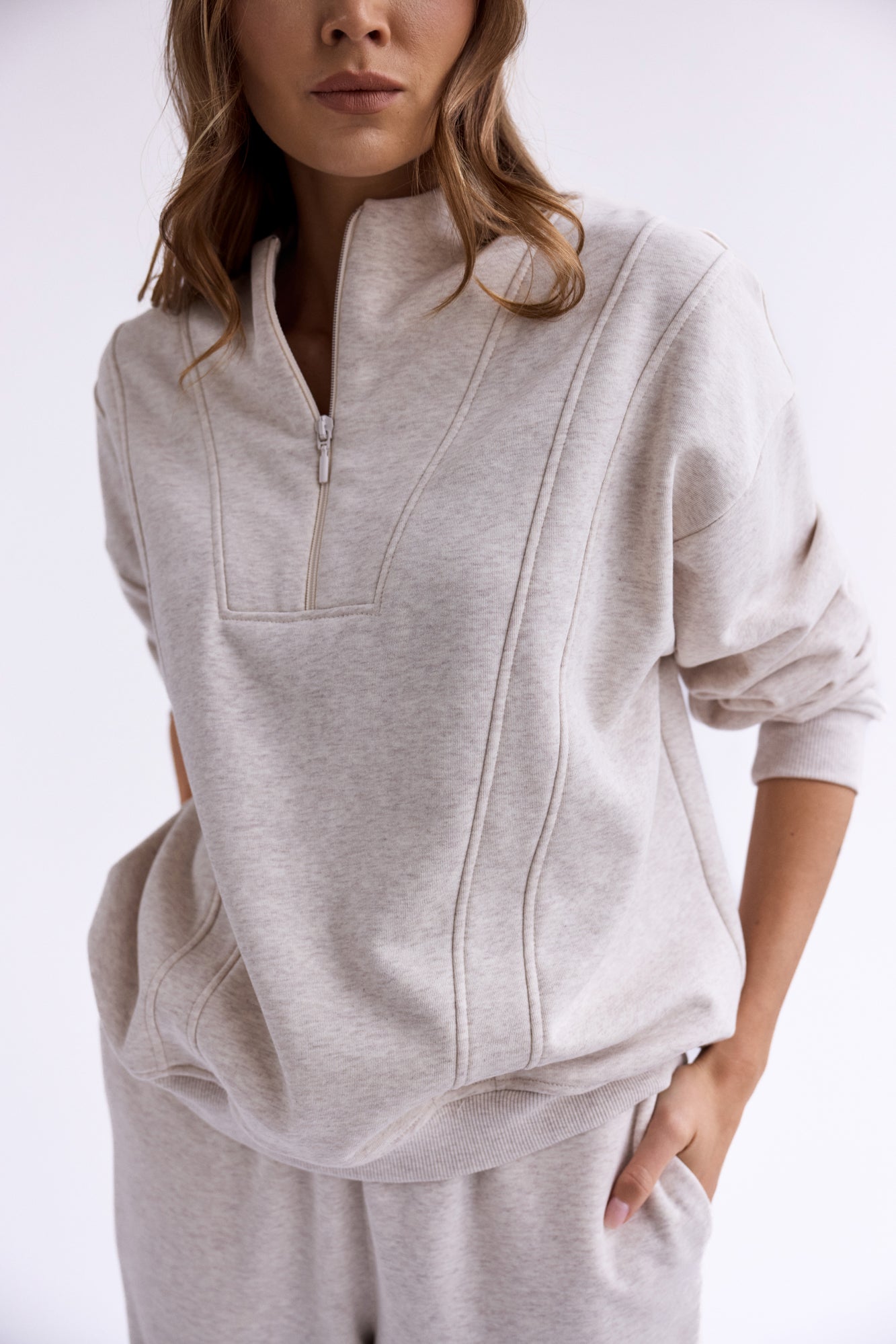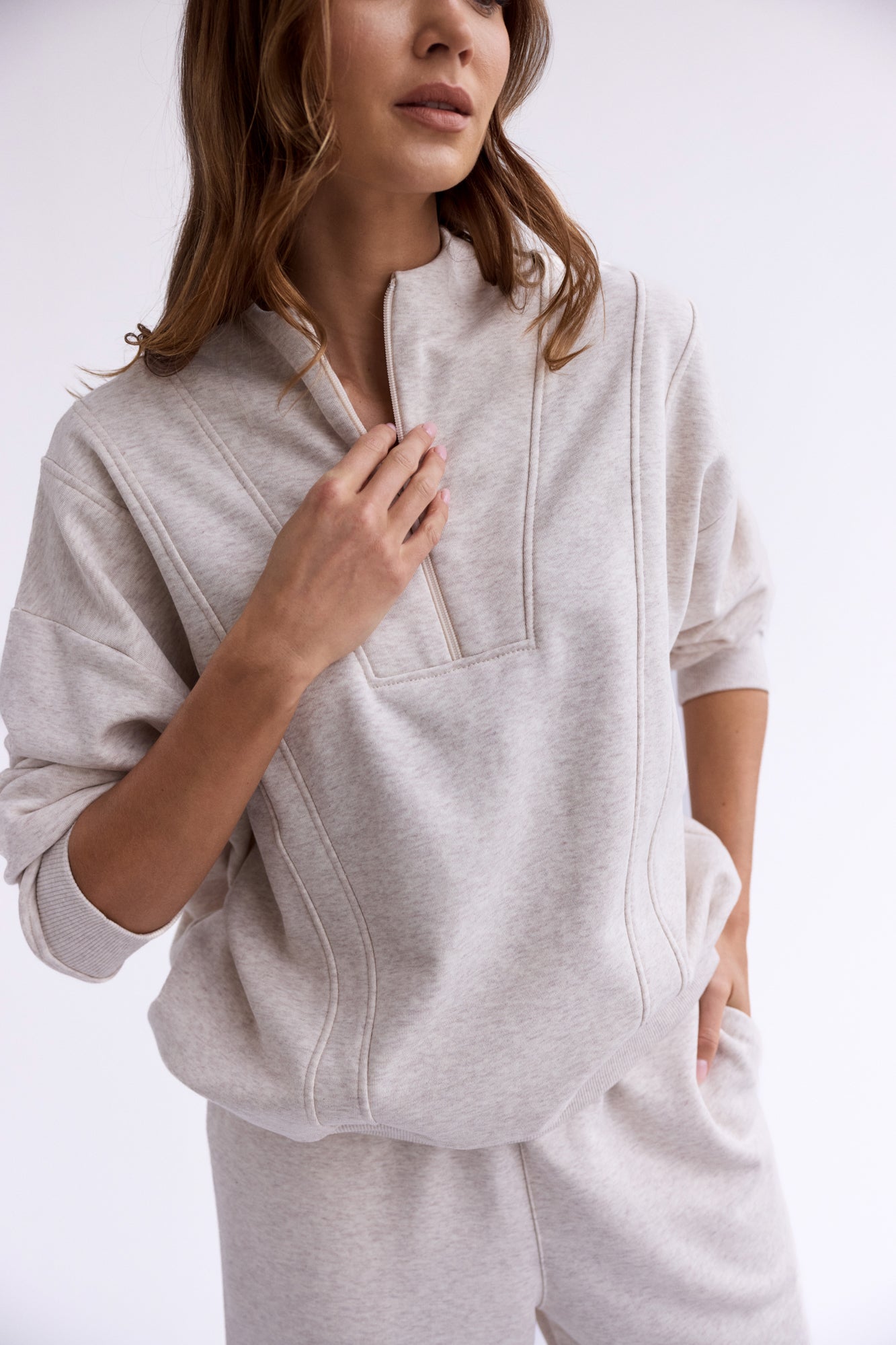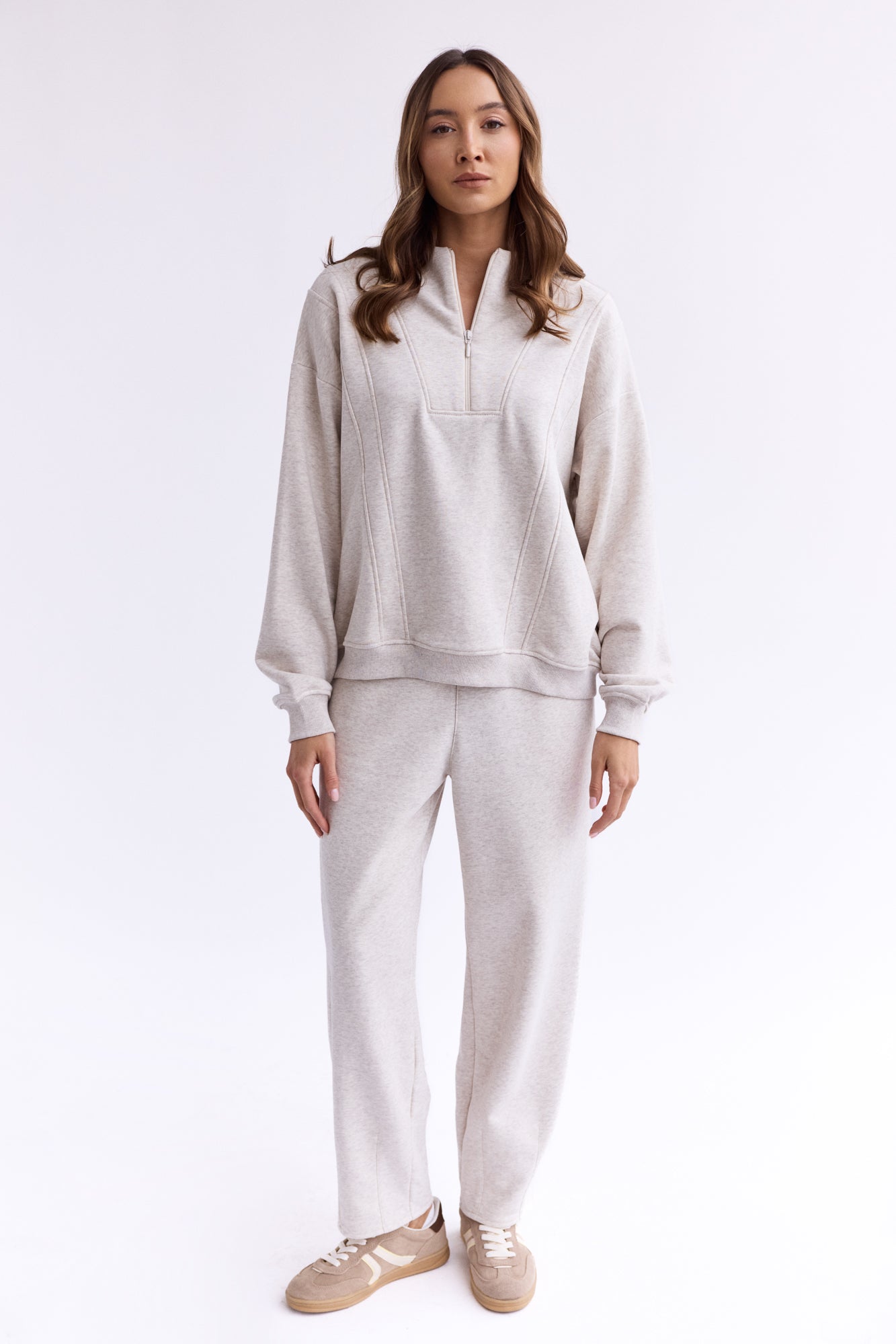 Ribbed, elastic cotton with a cuff not only cleverly lengthens and slims the legs thanks to its texture, but also fits perfectly to the body. Additionally, attention to detail and aesthetic finishes.