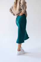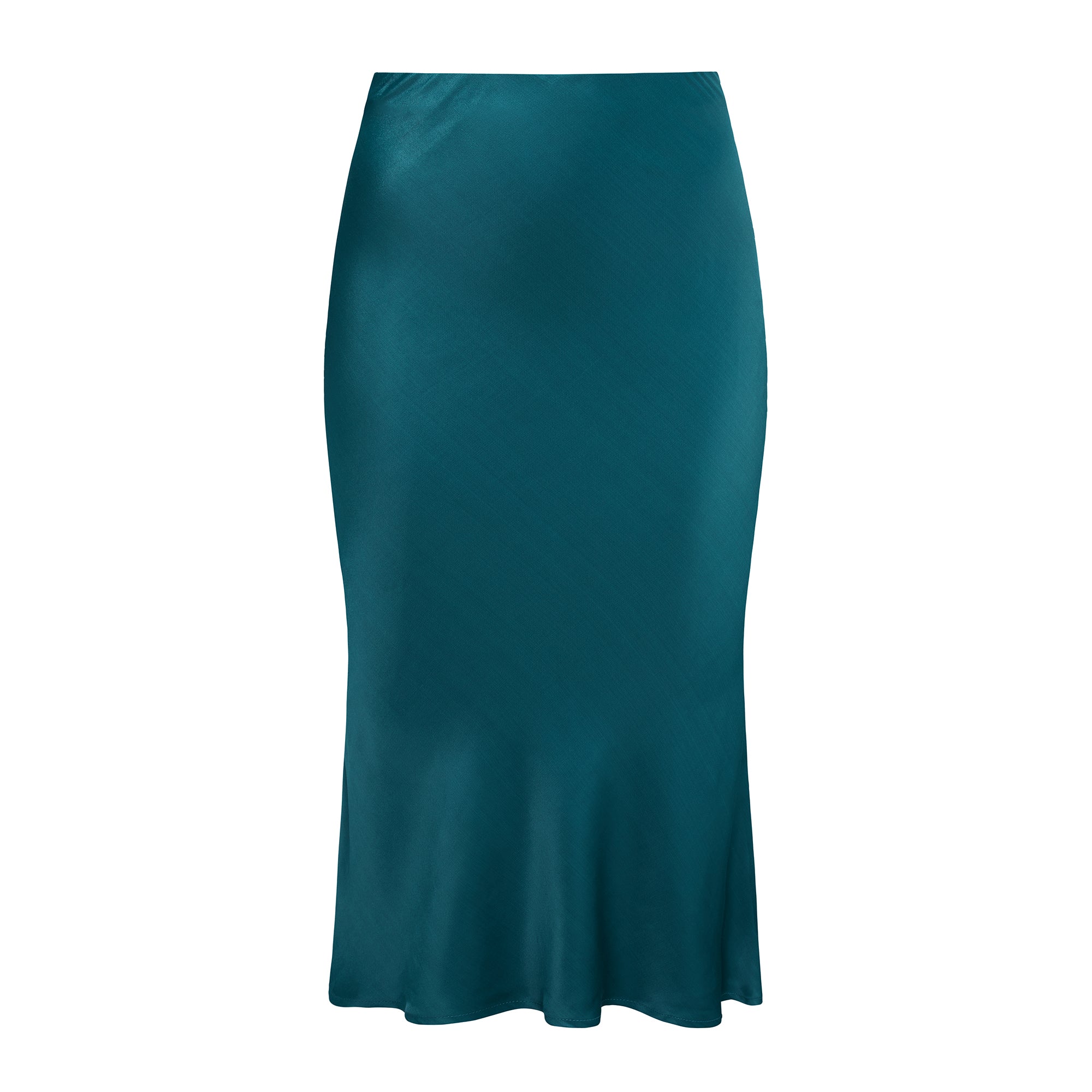 It has a timeless, fitted but not tight cut that not only drapes beautifully but also accentuates your figure. A subtle elastic waistband ensures comfort while highlighting the waist, and the satin viscose fabric adds a touch of lightness. Add to that the midi length, falling just below the knee, that gives it a casual feel and makes it perfect for everyday outfits.