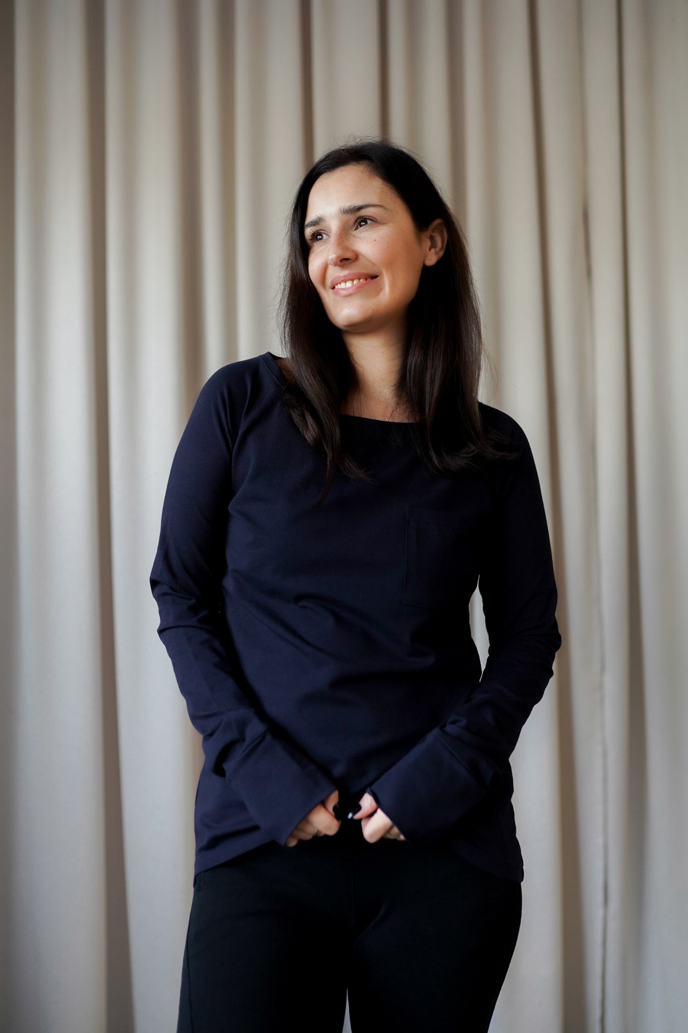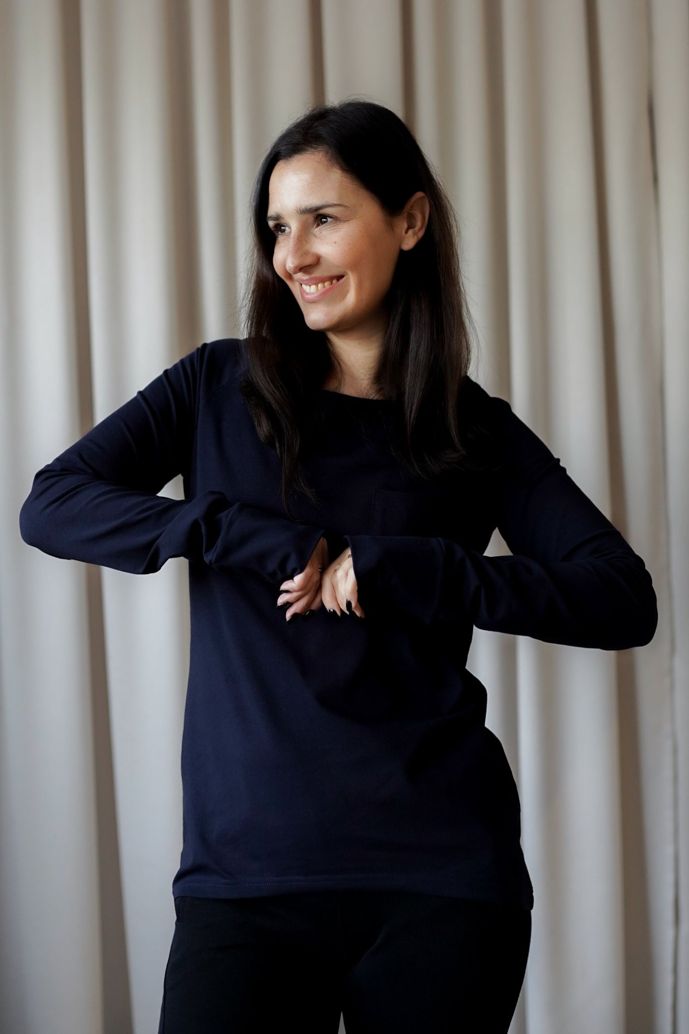 It has a simple, classic cut, a deeper neckline and is a bit longer, so you can wear it in many ways. It will work well for everyday with leggings, shorts, jeans or skirts. The cutouts are so delicate that you will no longer have to worry about protruding straps or visible underwear. You won't even think about them!