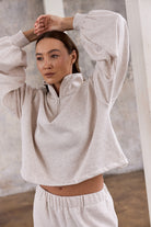 Są takie bluzy, które poza wygodą, przemycają nutę nonszalancji i sięgają po bardzo kobiece akcenty. Tak właśnie jest z tą bluzą. Celeste to esencja komfortu w lekkiej i otulającej formie. Ma swobodny, nieco oversizowy fason z subtelnie opadającą linią ramion i szerokimi, bufiastymi rękawami zakończonymi ściągaczem. Dzięki temu układa się miękko i pięknie pracuje przy każdym ruchu.