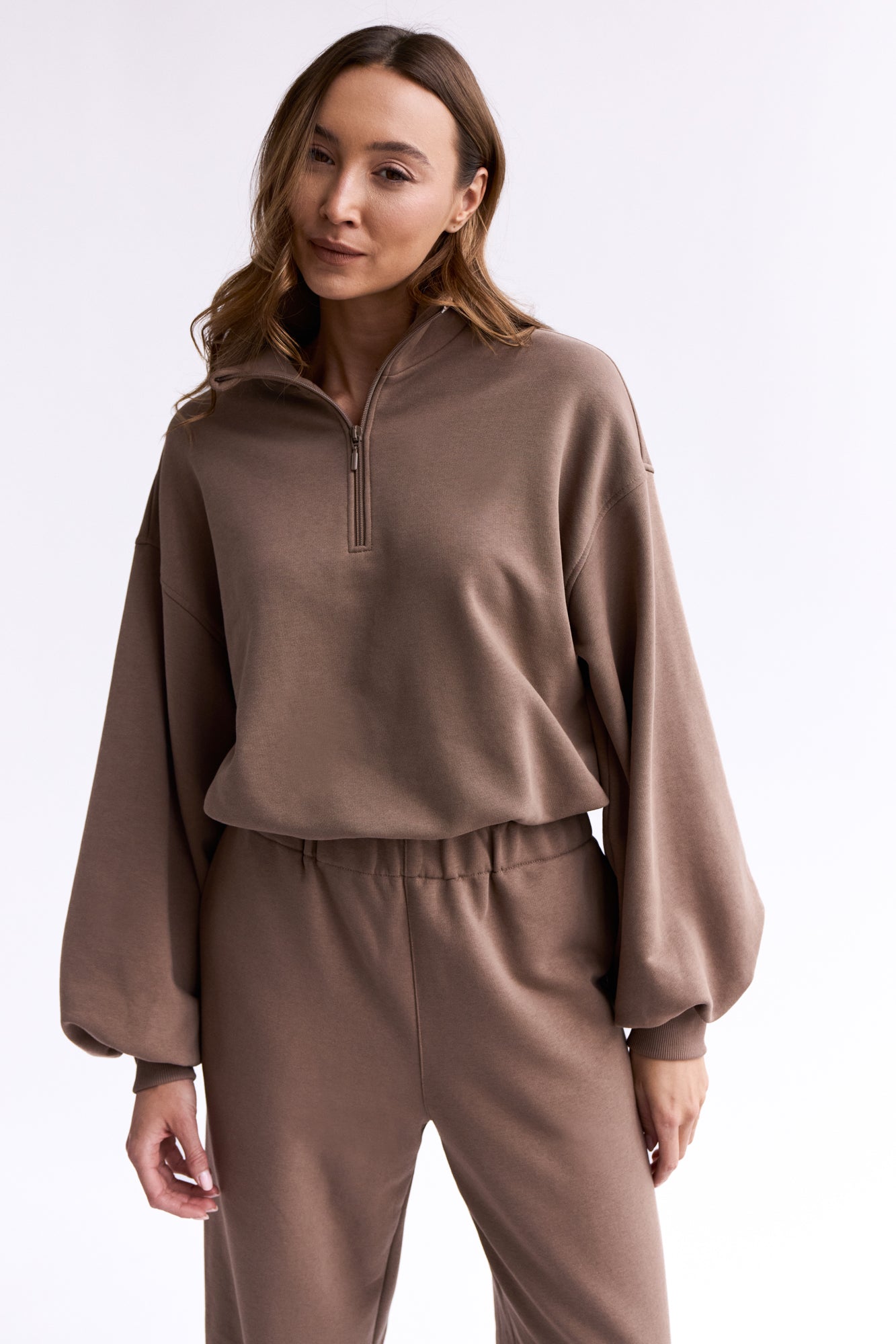 Są takie bluzy, które poza wygodą, przemycają nutę nonszalancji i sięgają po bardzo kobiece akcenty. Tak właśnie jest z tą bluzą. Celeste to esencja komfortu w lekkiej i otulającej formie. Ma swobodny, nieco oversizowy fason z subtelnie opadającą linią ramion i szerokimi, bufiastymi rękawami zakończonymi ściągaczem. Dzięki temu układa się miękko i pięknie pracuje przy każdym ruchu.