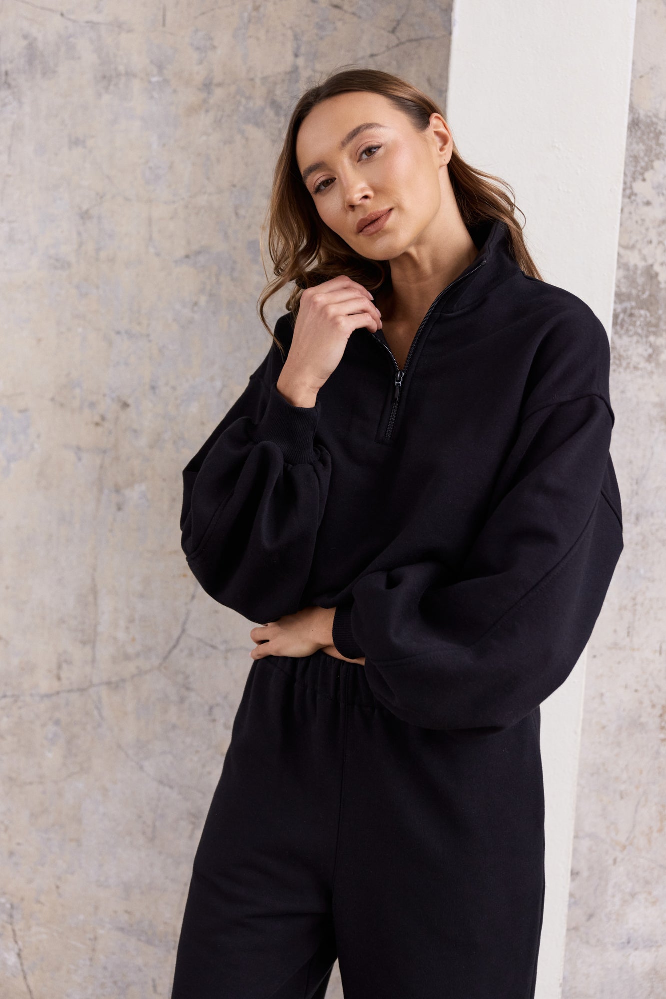 Są takie bluzy, które poza wygodą, przemycają nutę nonszalancji i sięgają po bardzo kobiece akcenty. Tak właśnie jest z tą bluzą. Celeste to esencja komfortu w lekkiej i otulającej formie. Ma swobodny, nieco oversizowy fason z subtelnie opadającą linią ramion i szerokimi, bufiastymi rękawami zakończonymi ściągaczem. Dzięki temu układa się miękko i pięknie pracuje przy każdym ruchu.