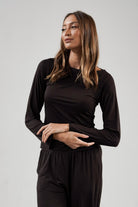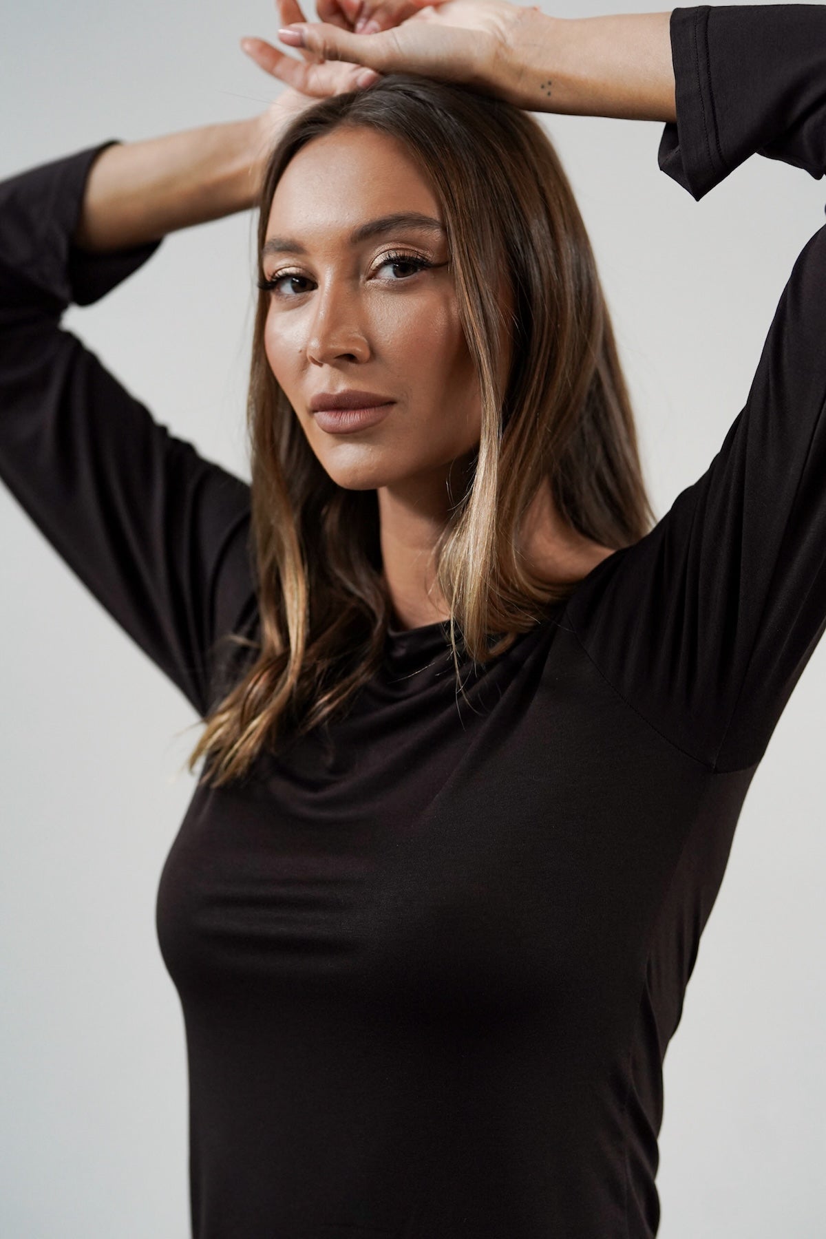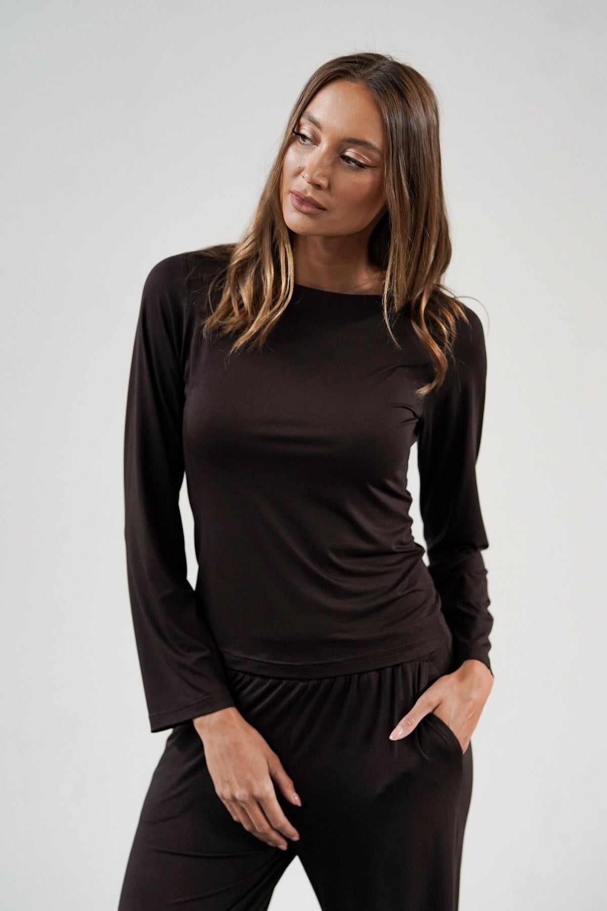 Minimalizm w najlepszym i bardzo kobiecym wydaniu. Modal Touch to bluzka uszyta z miękkiego modalu z dodatkiem elastanu, który nie tylko pięknie się układa, ale też jest trwały i pozwala skórze oddychać. Delikatnie połyskująca, będzie idealnym wyborem na te dni, kiedy chcesz czuć się kobieco, ale bez zbędnego wysiłku.