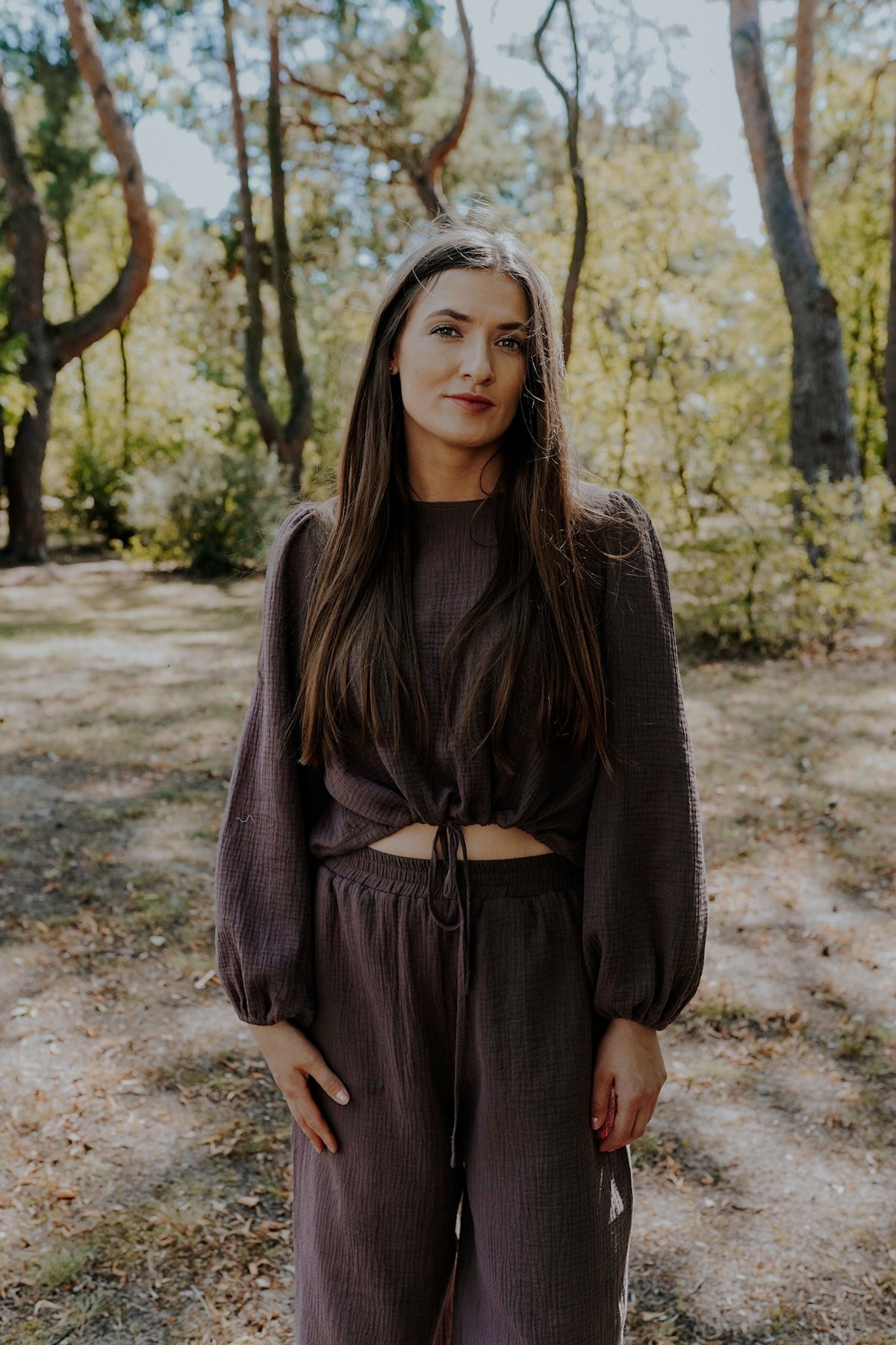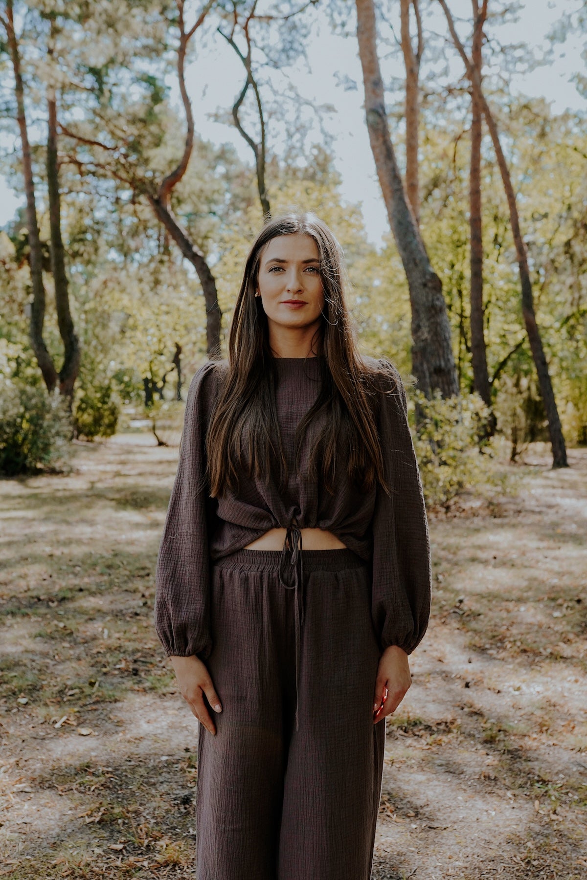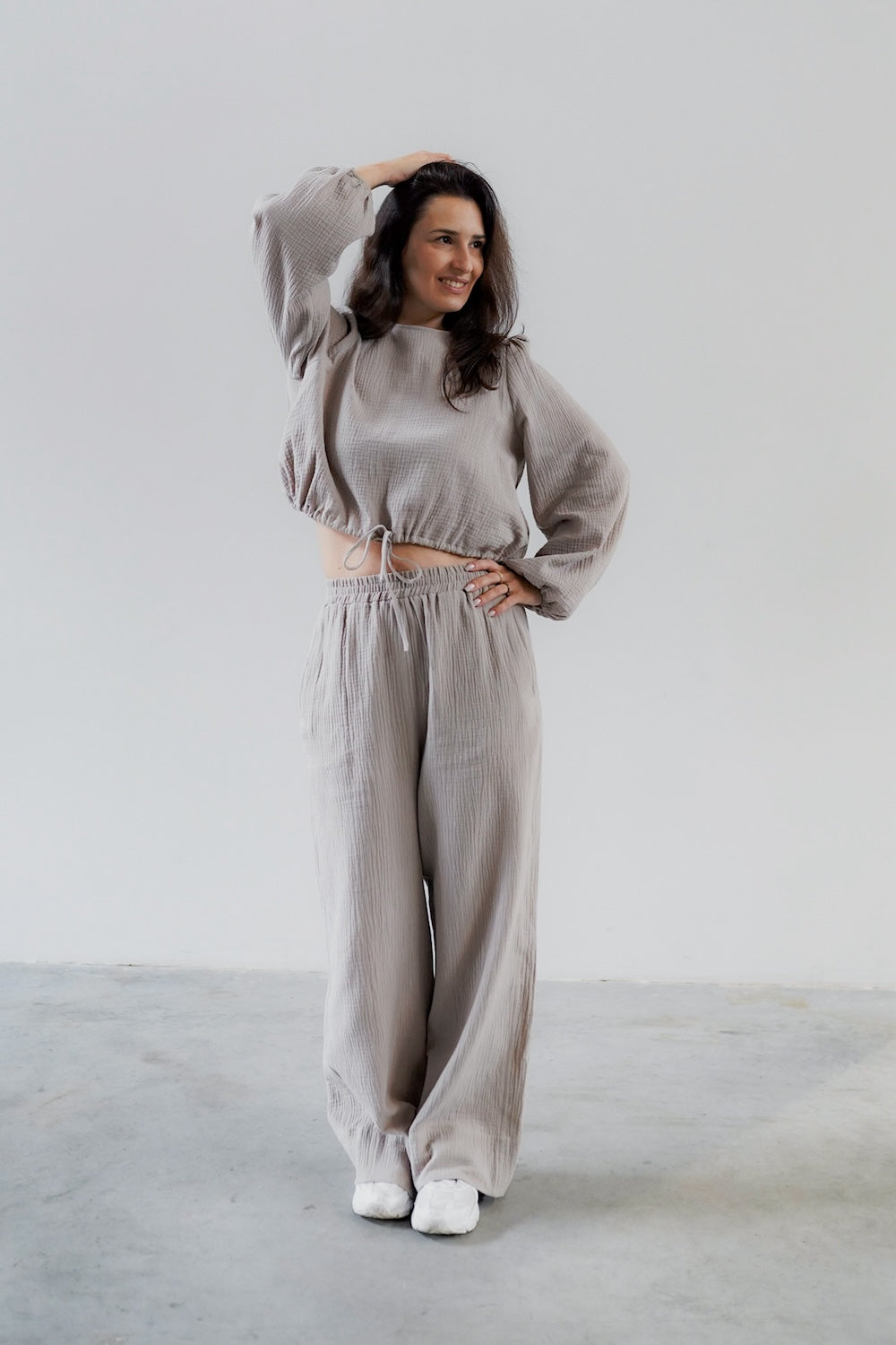 Lekkości i subtelności nadaje im zwiewny materiał w postaci bawełny muślinowej. Nogawki są odpowiednie szersze i nonszalancko dłuższe, by nadawały się nie tylko do płaskich butów, ale też stworzyły zgrabny look ze szpilkami. Do tego kieszenie, które pomieszczą drobiazgi, a w talii wszyta wygodna, estetyczna gumka.