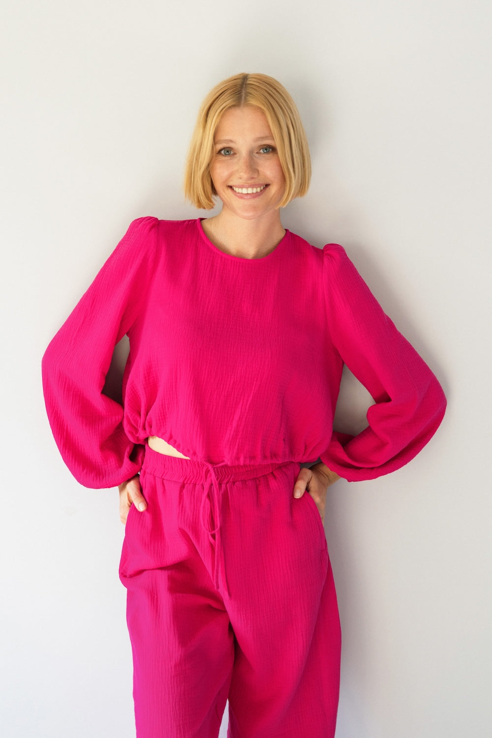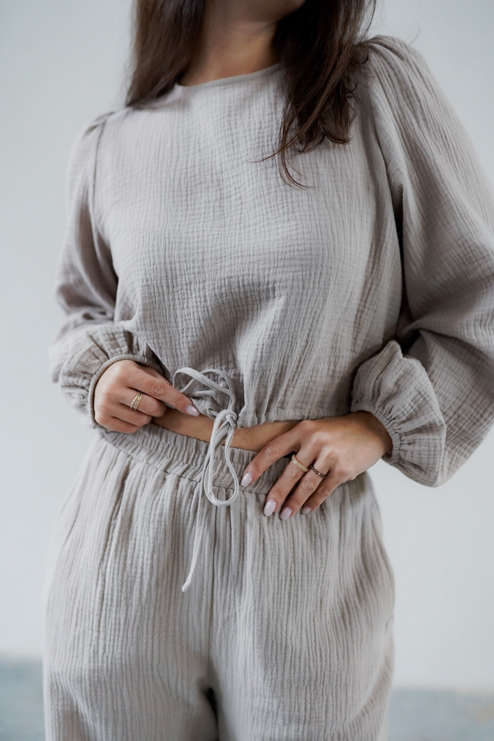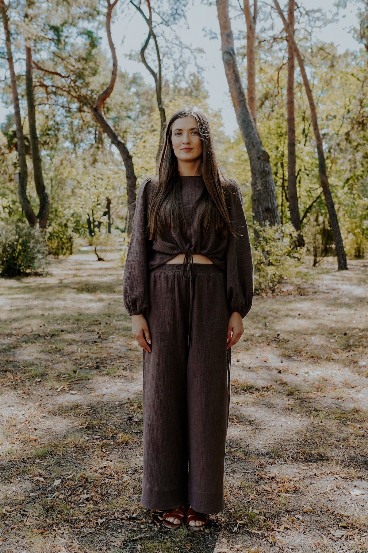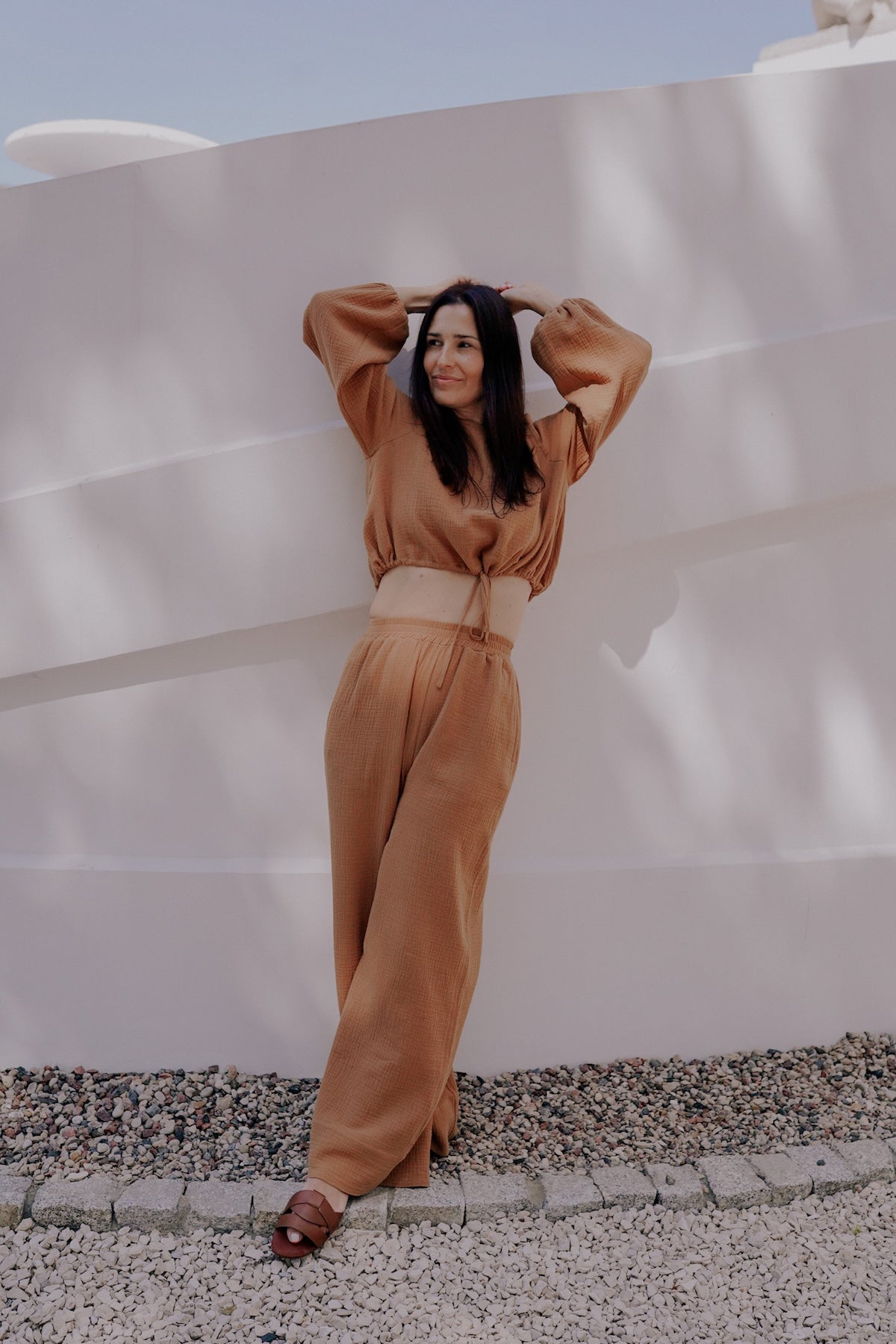 Lekkości i subtelności nadaje im zwiewny materiał w postaci bawełny muślinowej. Nogawki są odpowiednie szersze i nonszalancko dłuższe, by nadawały się nie tylko do płaskich butów, ale też stworzyły zgrabny look ze szpilkami. Do tego kieszenie, które pomieszczą drobiazgi, a w talii wszyta wygodna, estetyczna gumka.