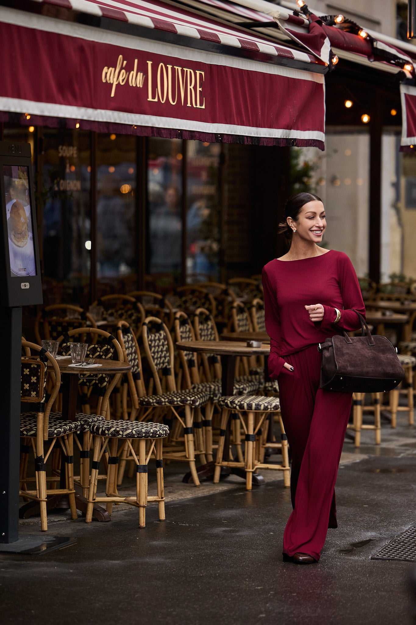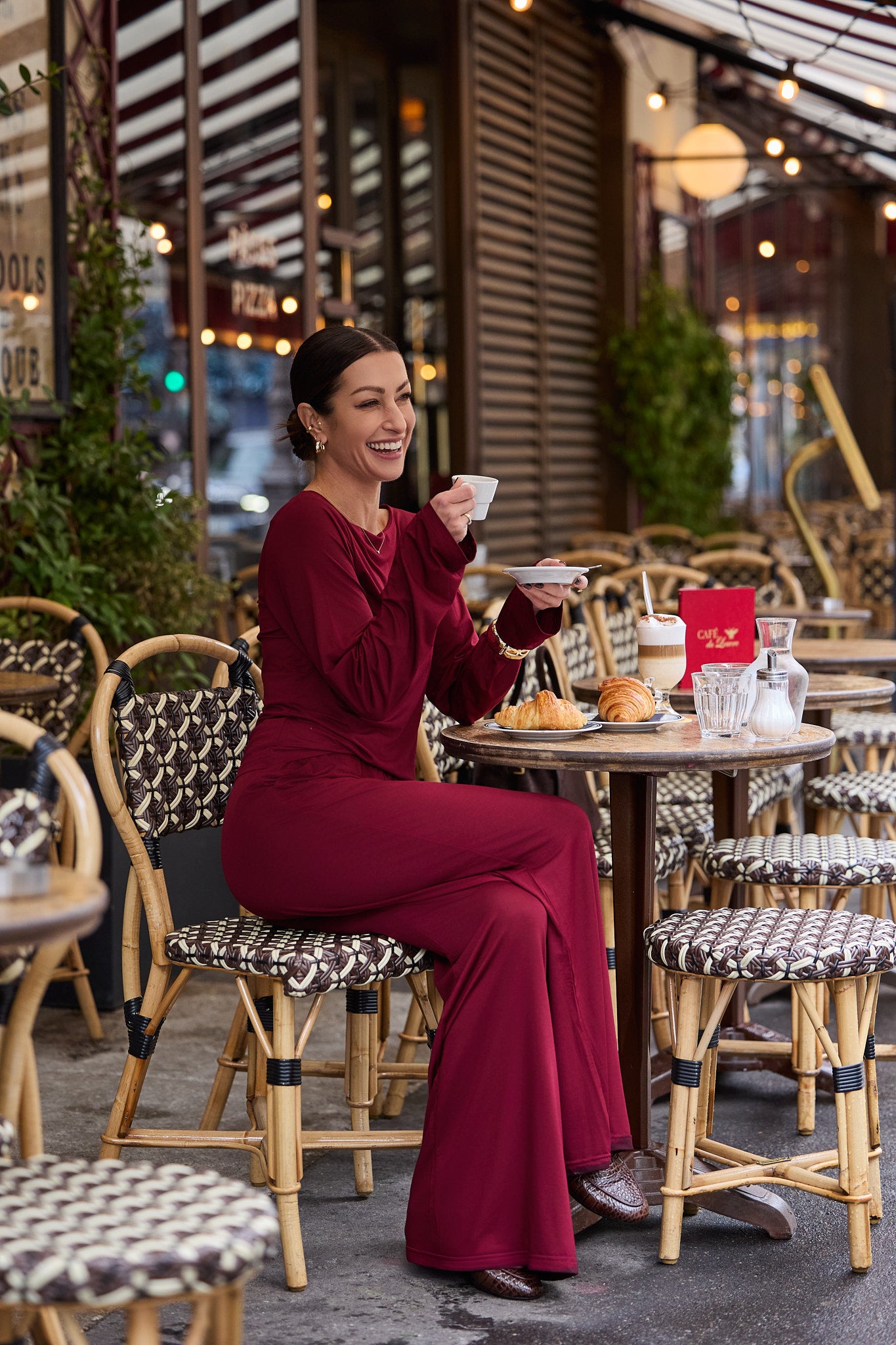 Wykonane z wysokogatunkowej dzianiny – 94% modalu i 6% elastanu – są nie tylko przyjemnie miękkie, ale też oddychające i trwałe. Materiał pięknie się układa, otulając skórę jak druga skóra, a jednocześnie pozwala jej swobodnie oddychać.