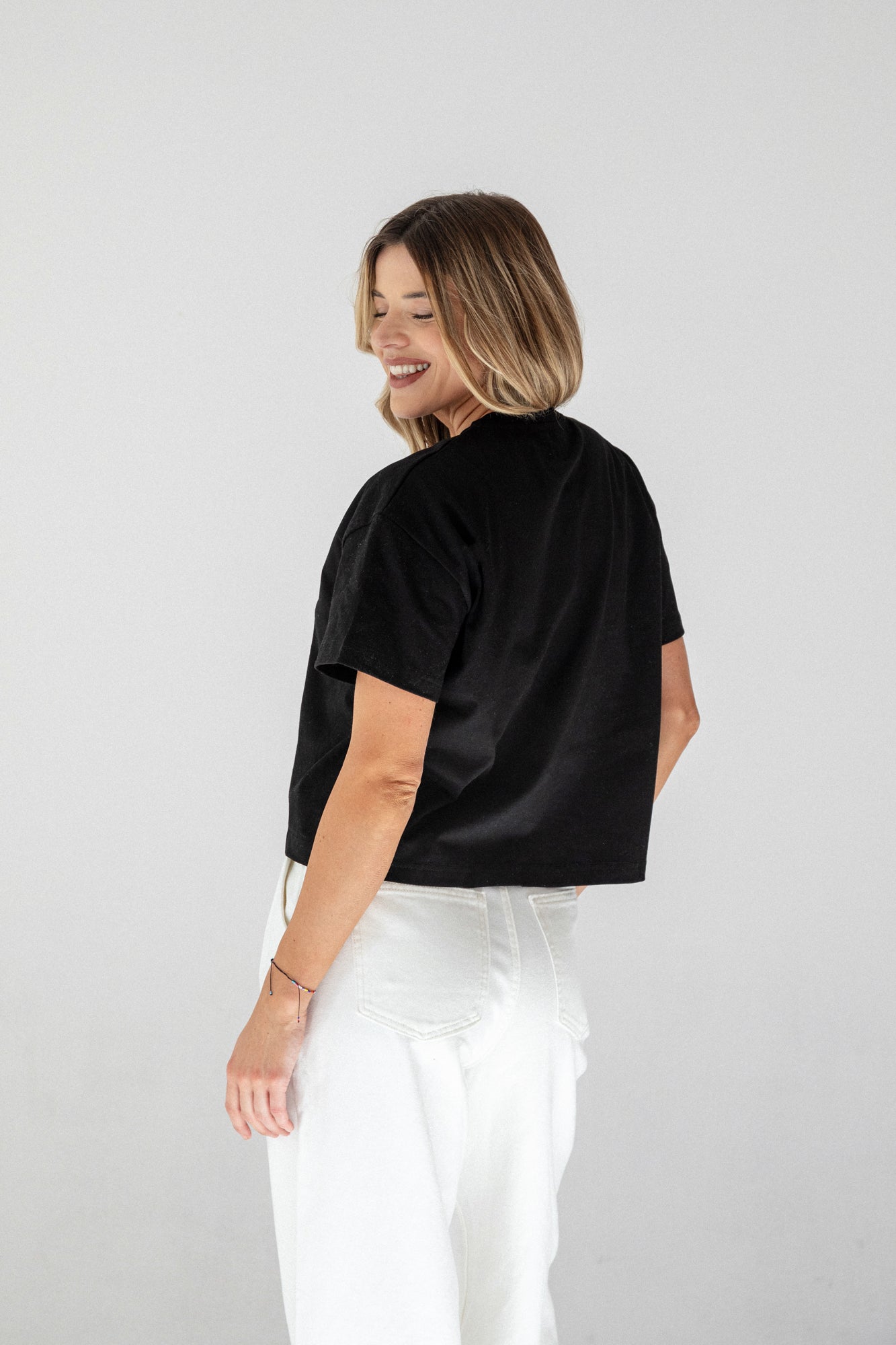 Ten model znakomicie odnajdzie się w różnych stylizacjach. Z leginsami czy dresami będzie udaną propozycją na popołudnie spędzone na kanapie, a z dżinsami i ramoneską możecie porwać go na spotkanie ze znajomymi. Po prostu Voilà - z nim zawsze jesteście gotowe do wyjścia, nasza idealna koszulka na każdy dzień.